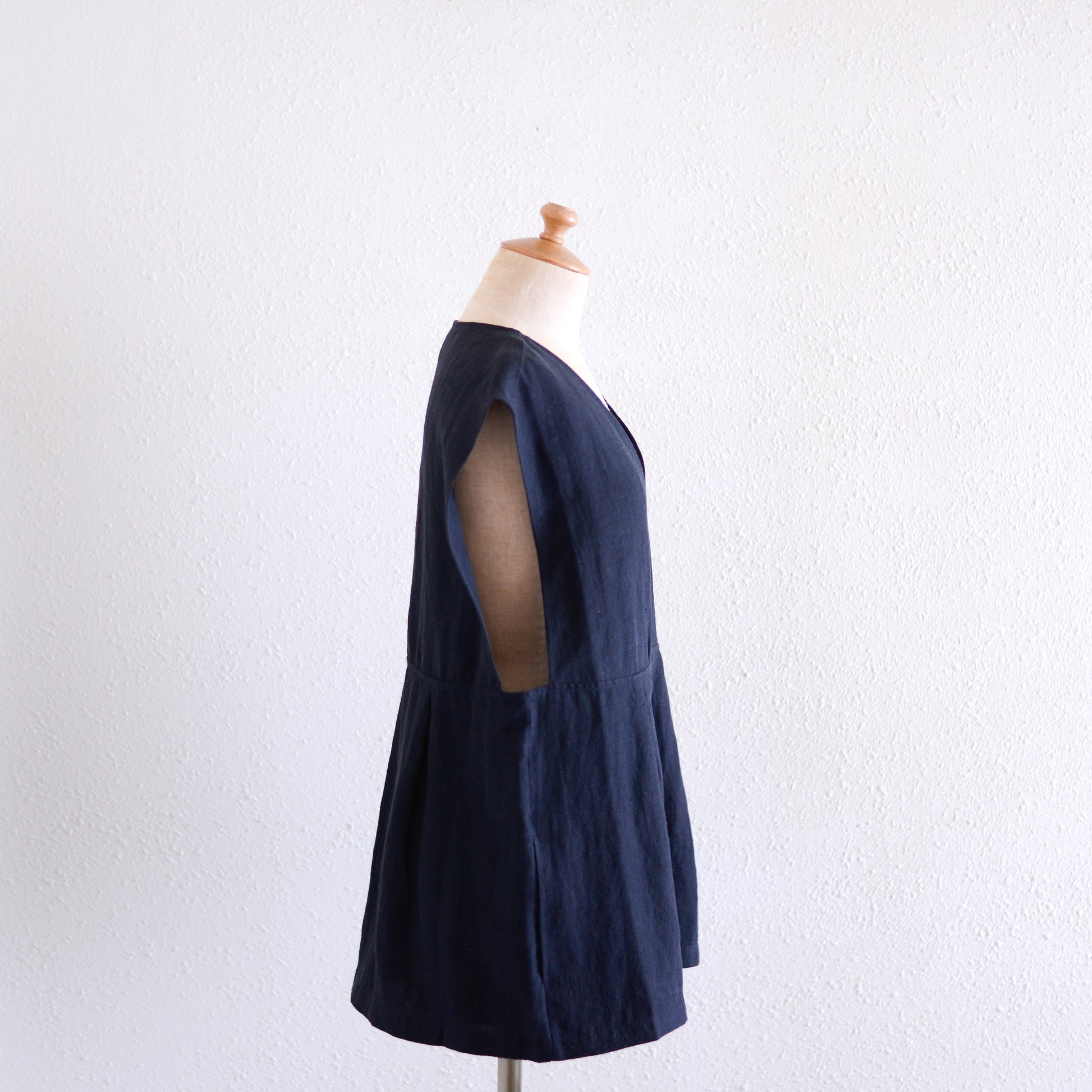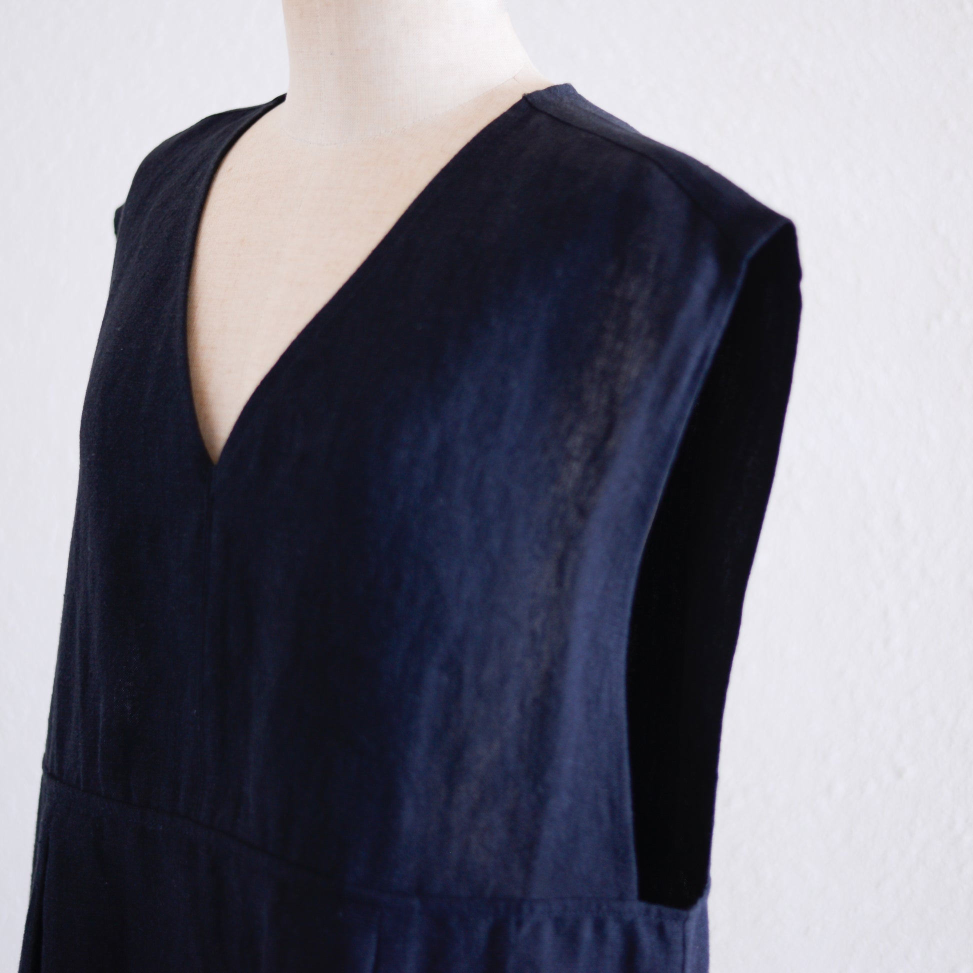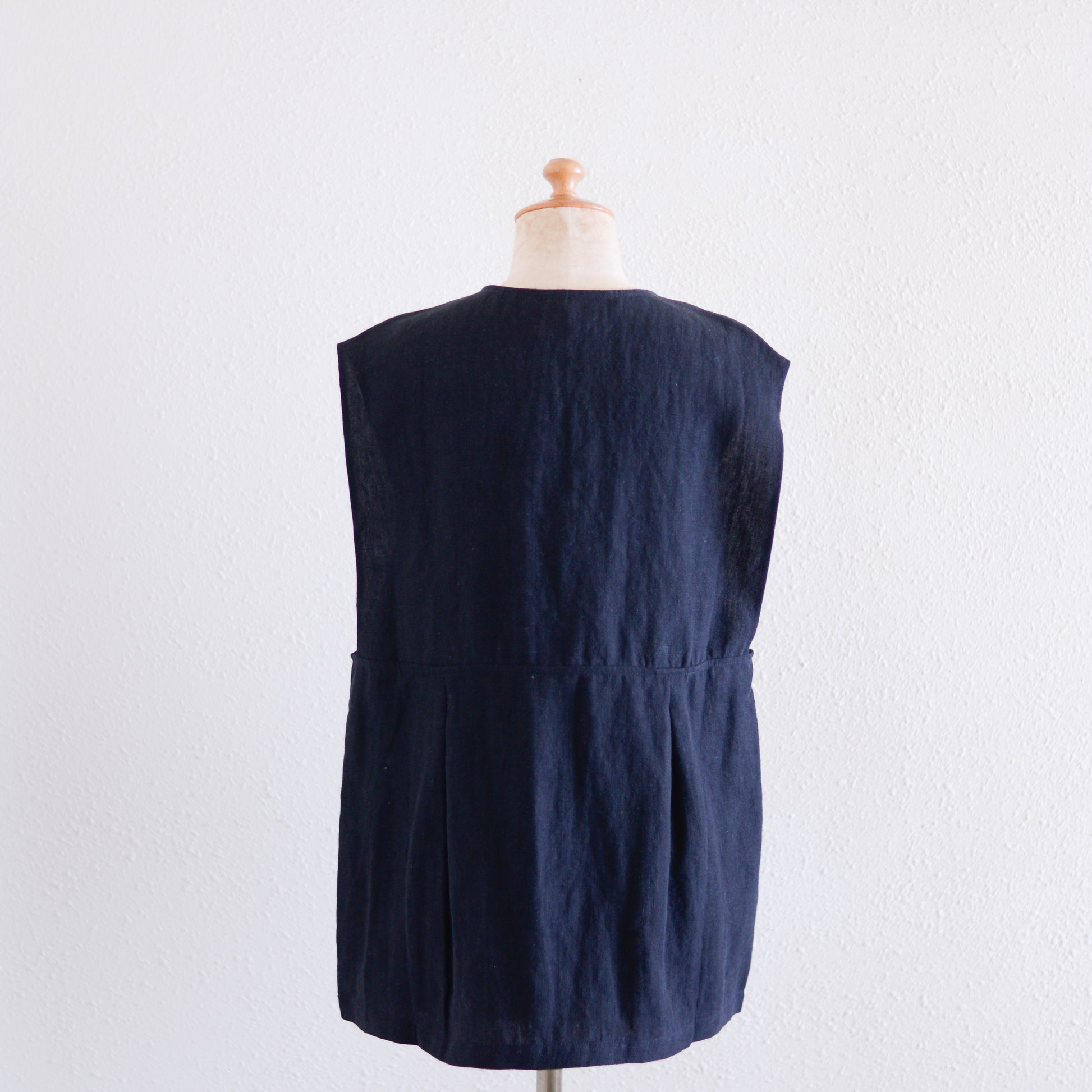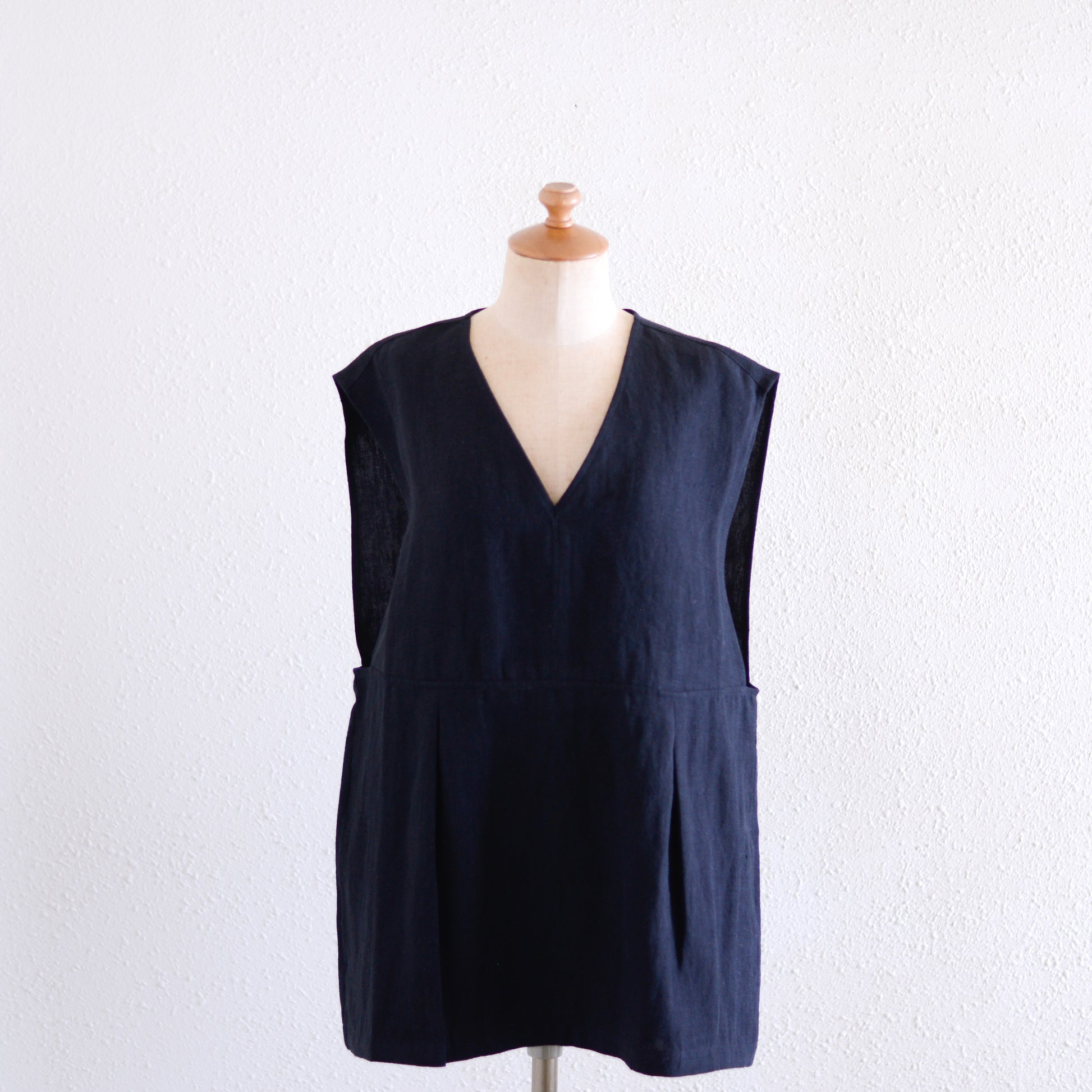 リネンVネックタックプルオーバー Black