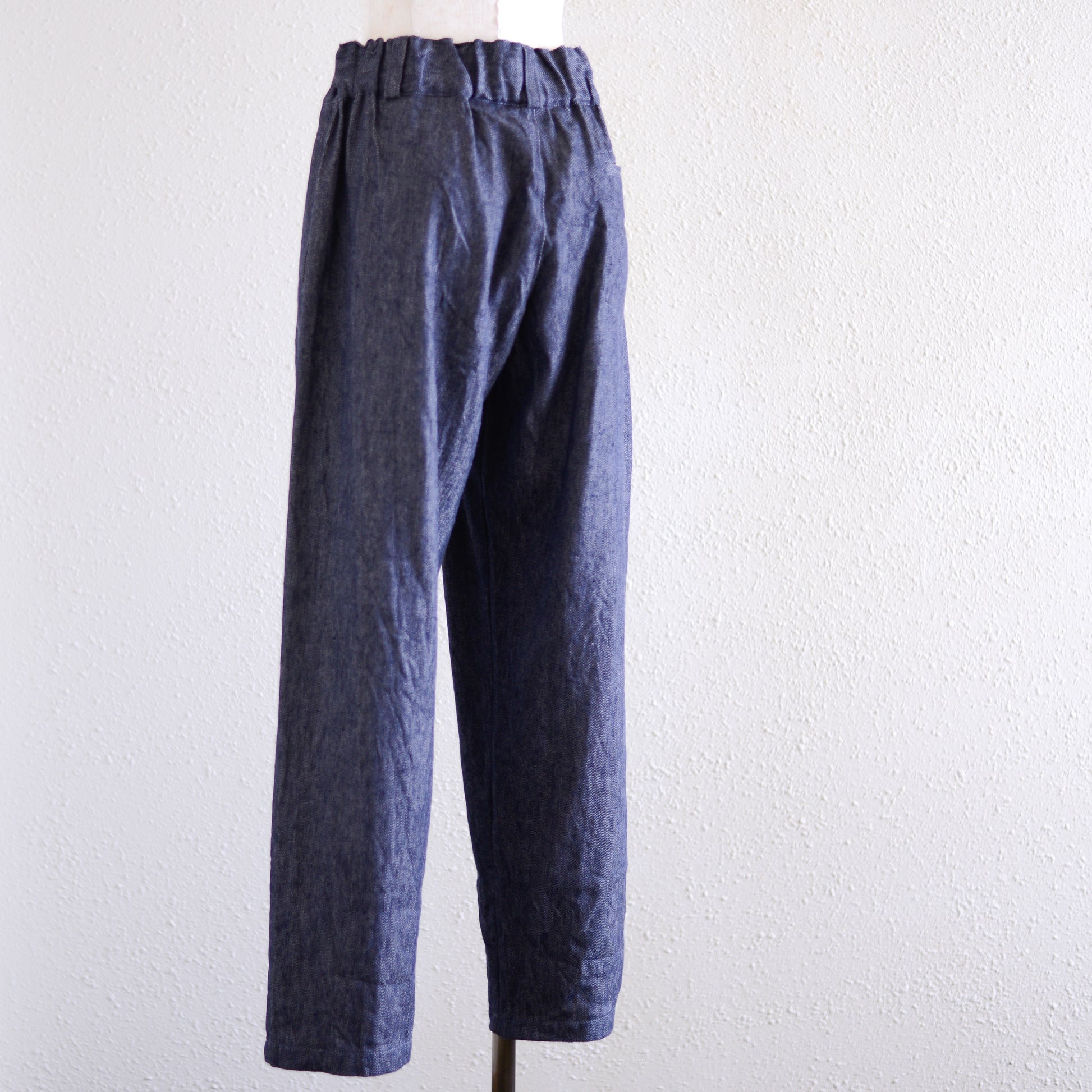 リネン特有の素朴な雰囲気と、コットンの柔らかな肌触りが心地よく、デニムの硬さが苦手な方にもすっと寄り添う質感です。