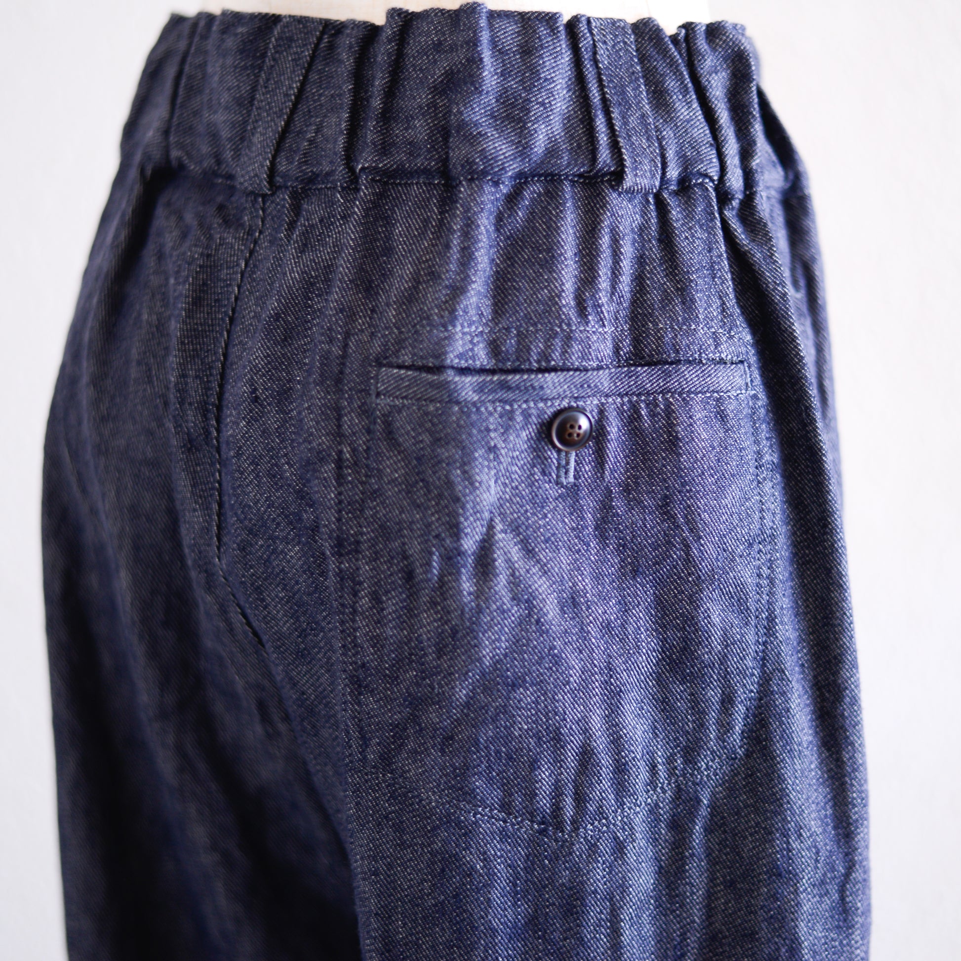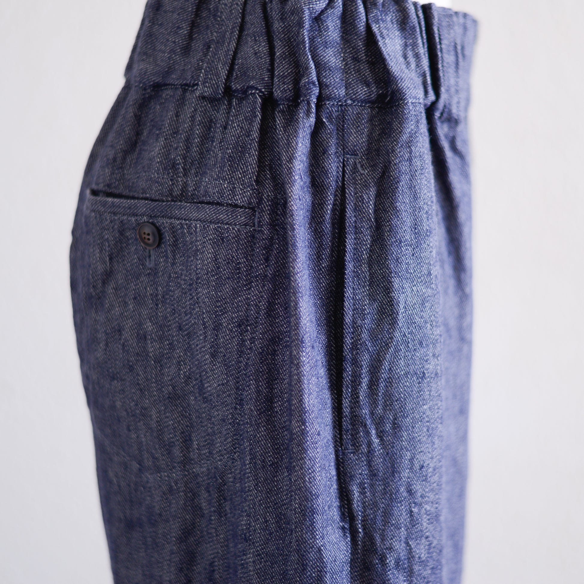 リネンとコットンを混紡したデニム生地は、中厚地でありながらとてもしなやか。