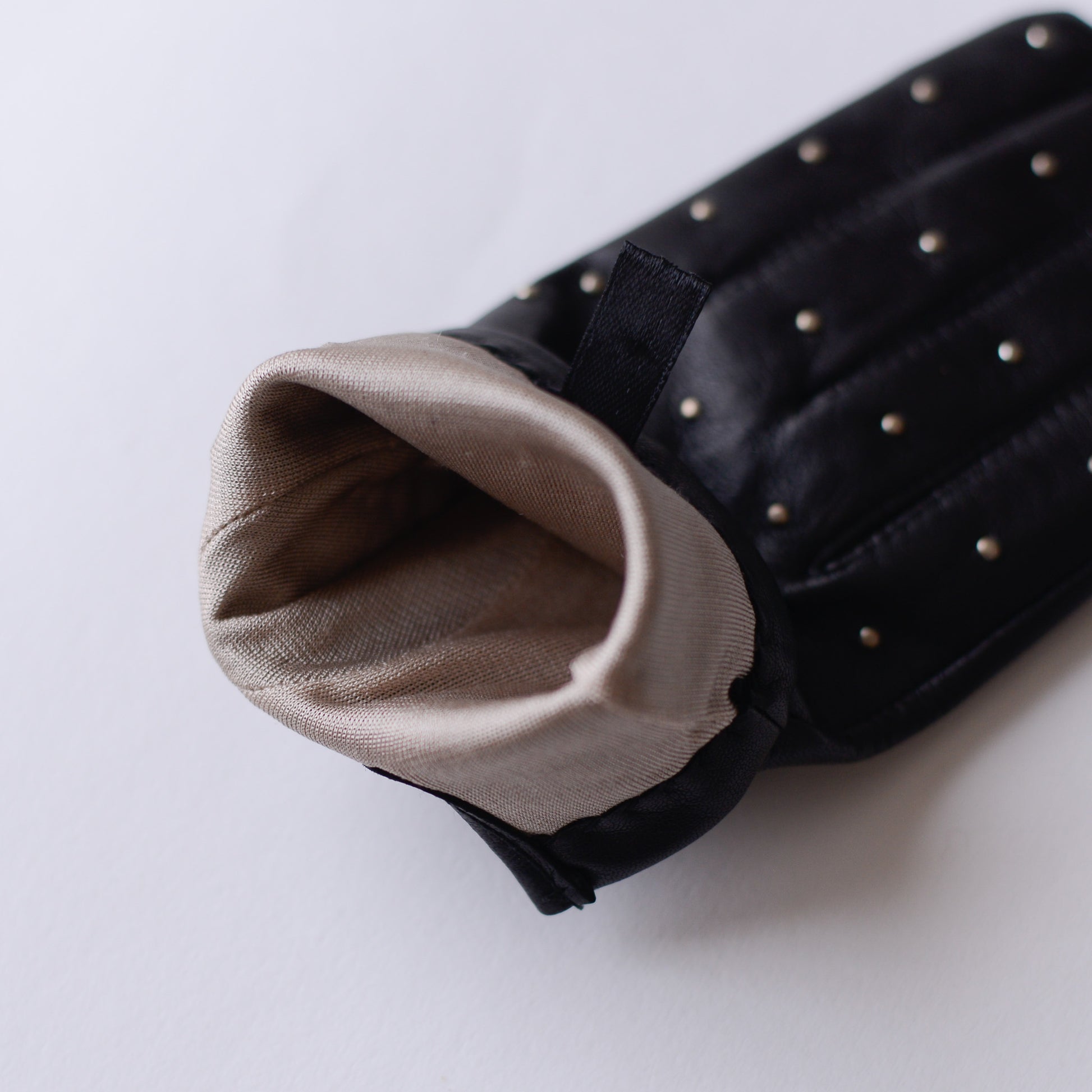 The material used is lamb leather, which is soft and moist and clings to your hand.