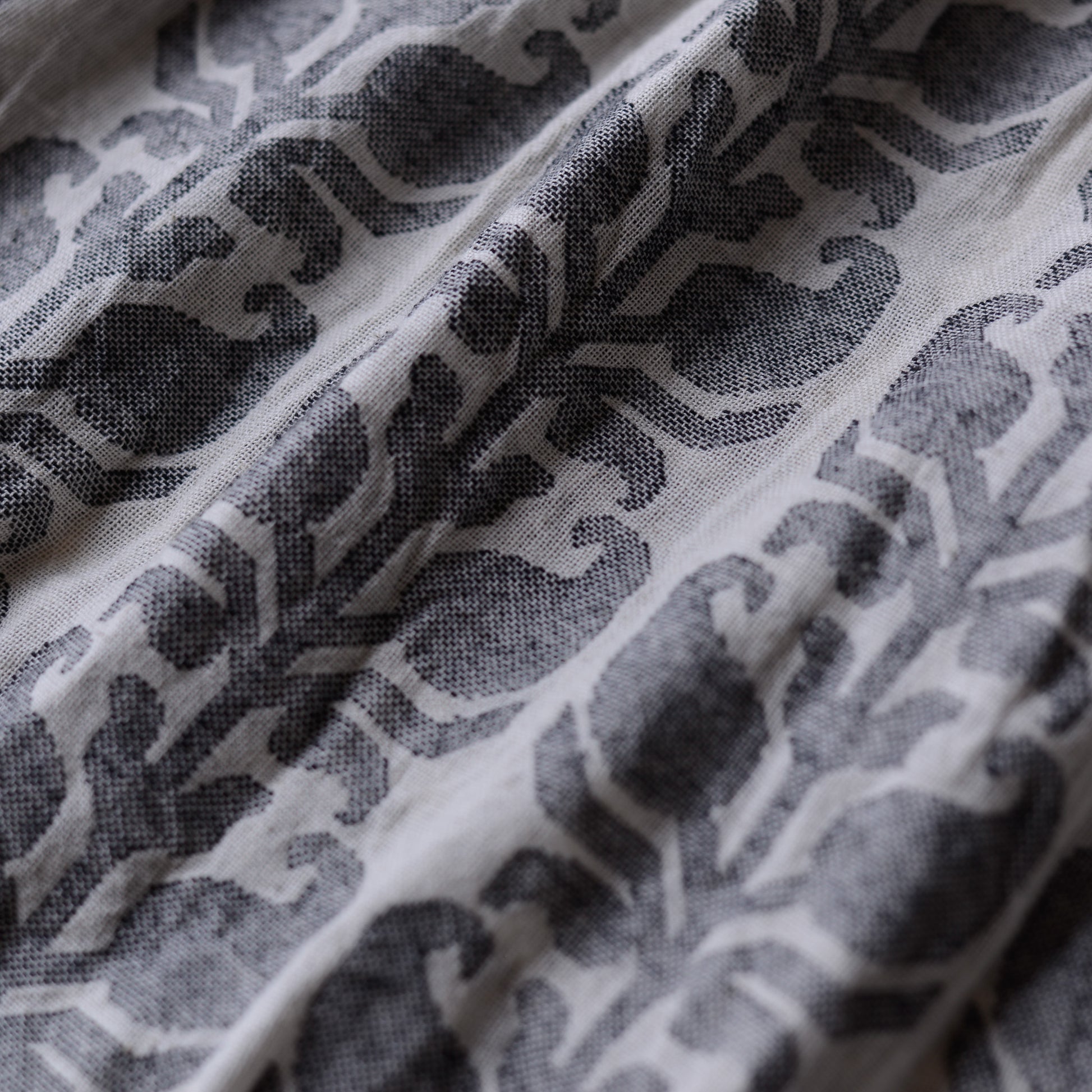 The outline of the pattern is revealed depending on the light, creating a captivating, quiet shadow effect.