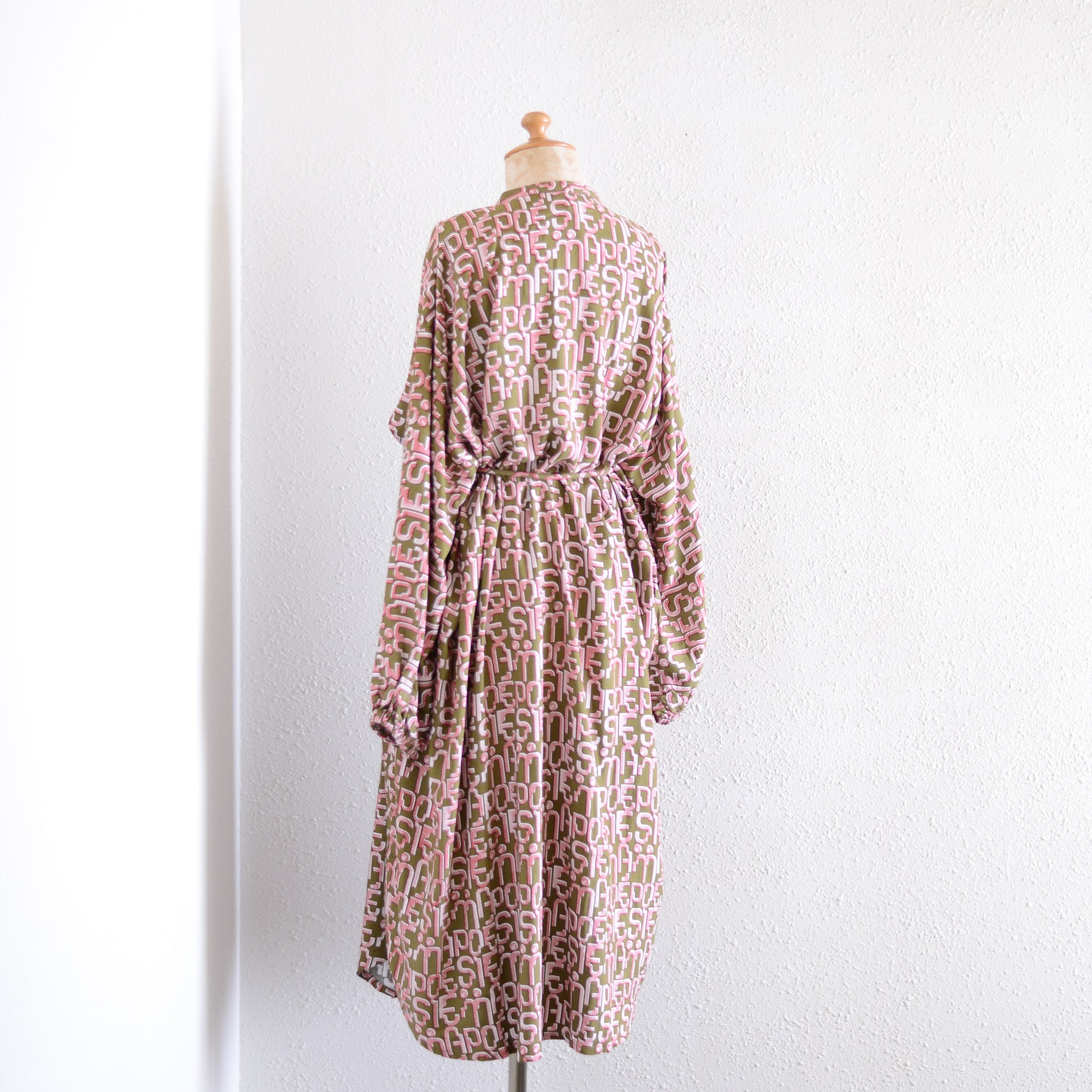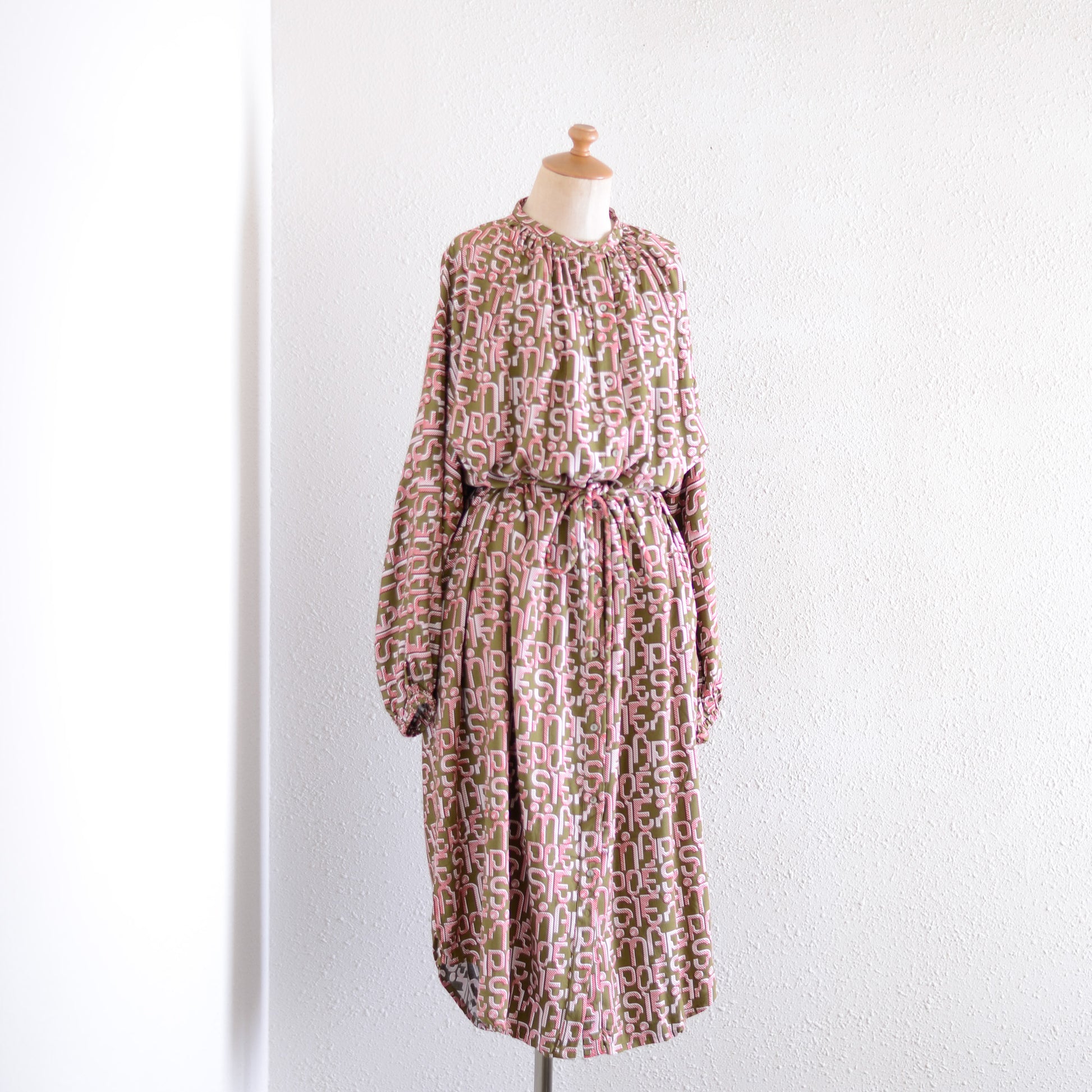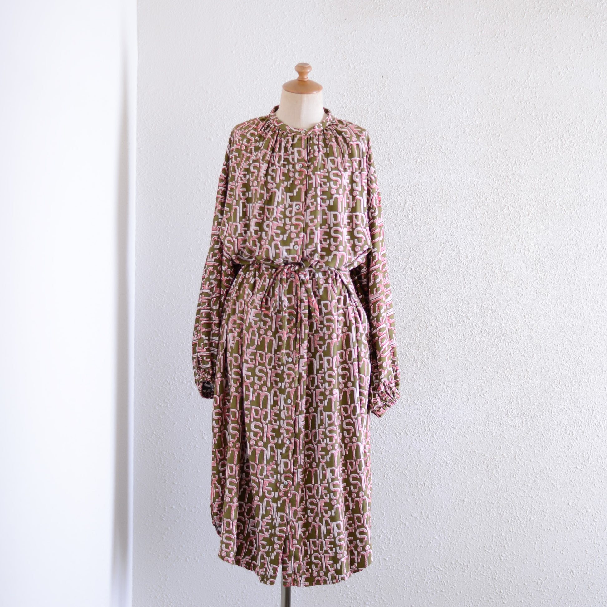 Viscose Text Print Dress Khaki×Pink