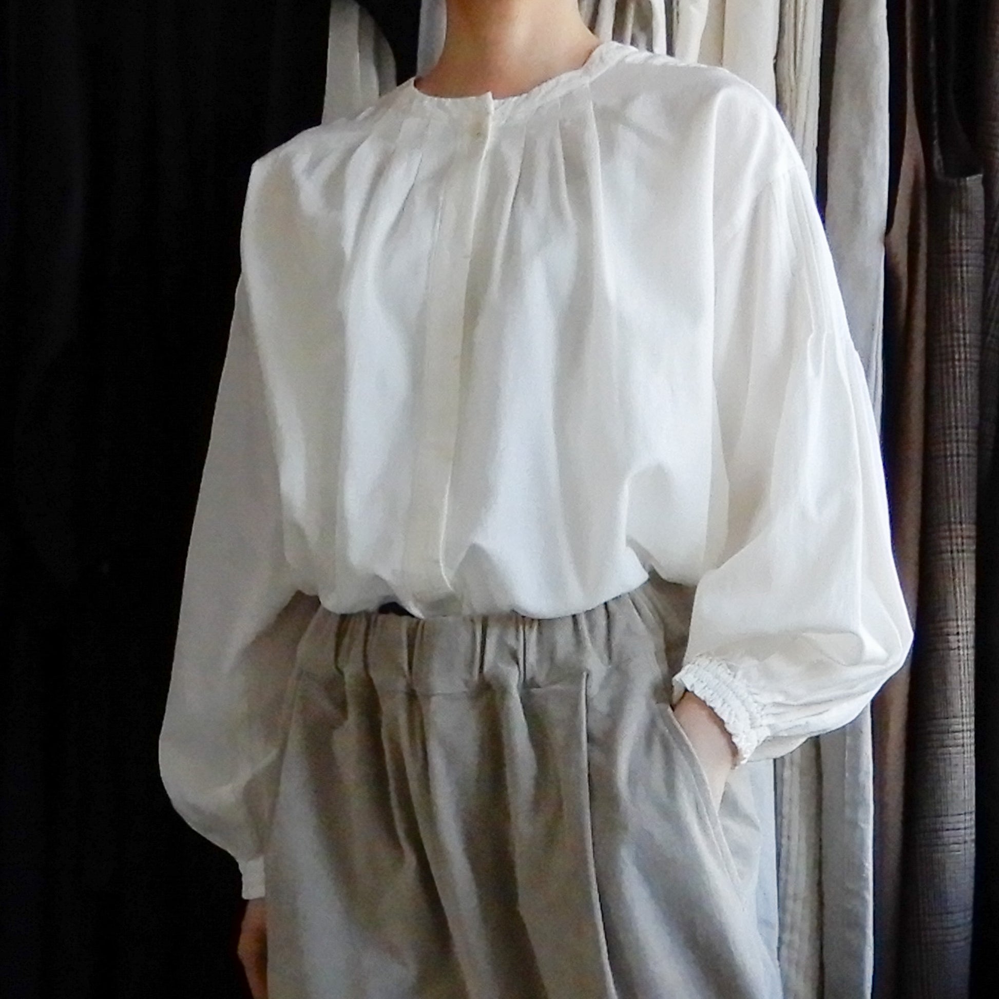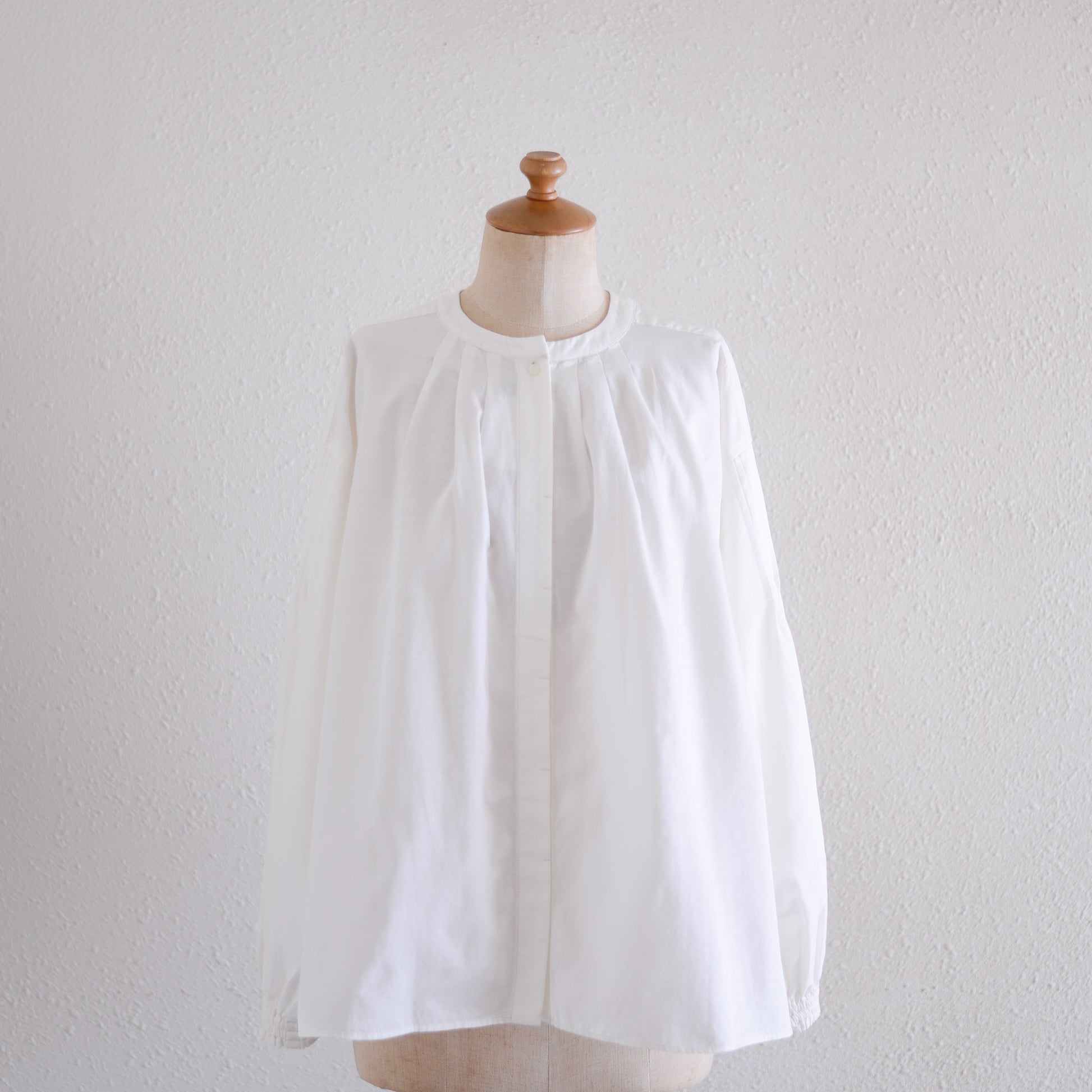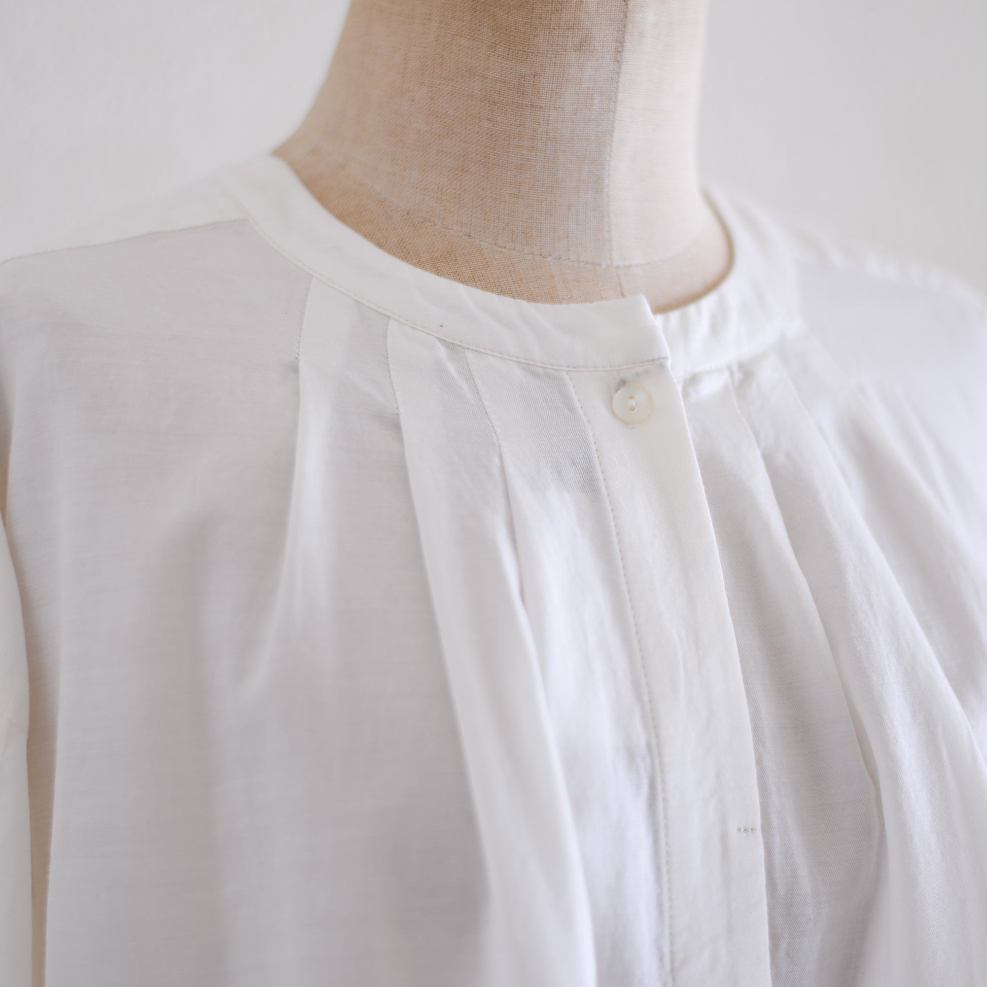 Cotton cupra wool pin tuck 2-way blouse