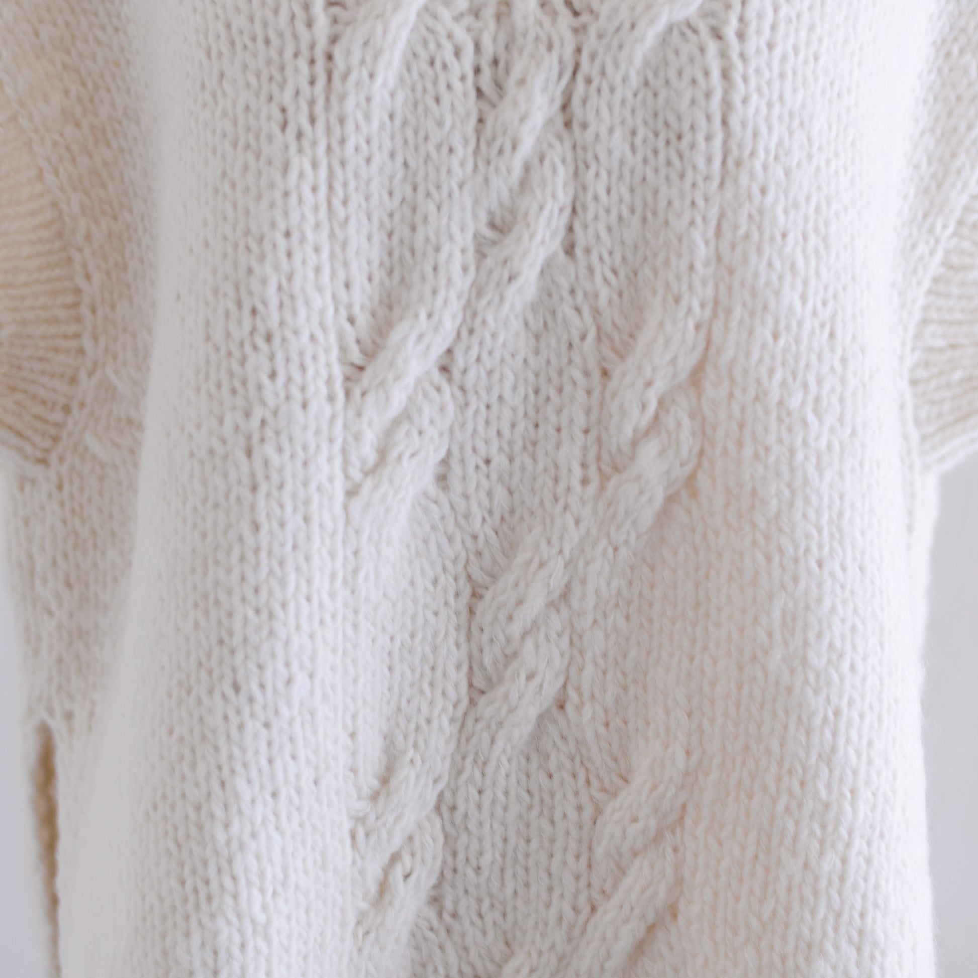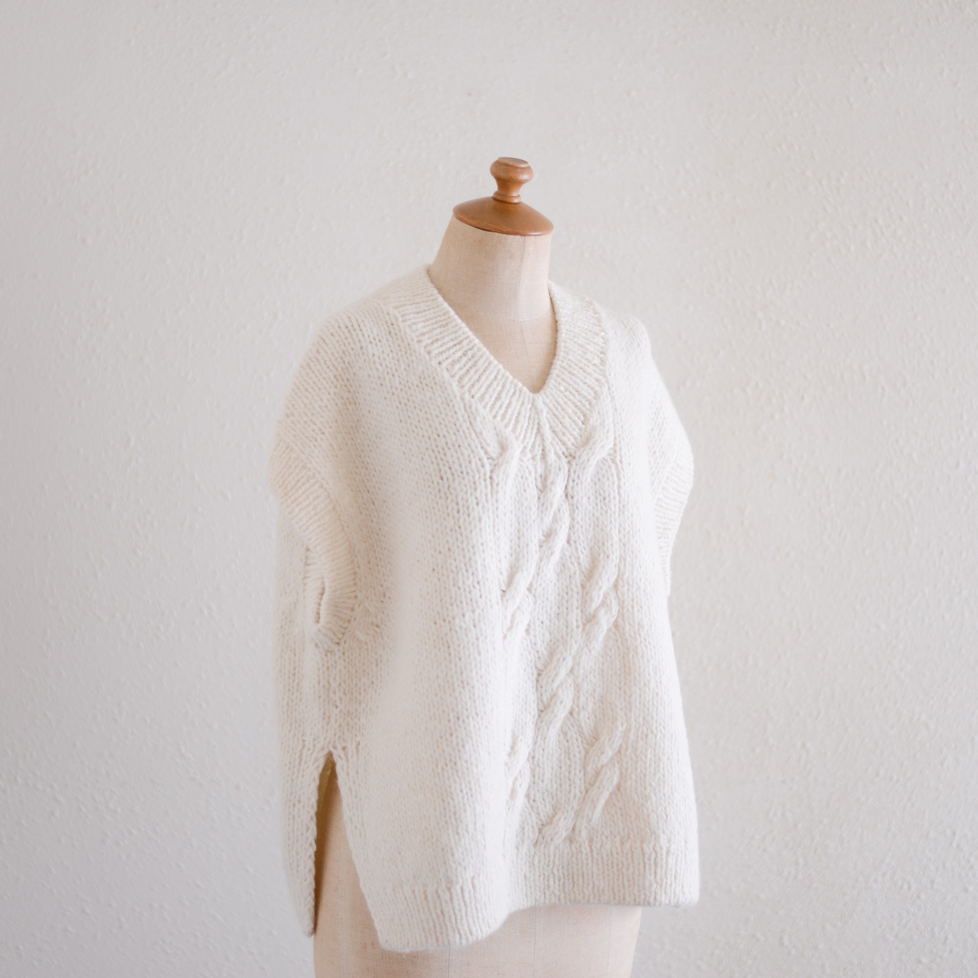We have prepared this piece with the three-dimensionality and gentle texture that only hand-knitted items can provide, making it a comfortable piece to wear.