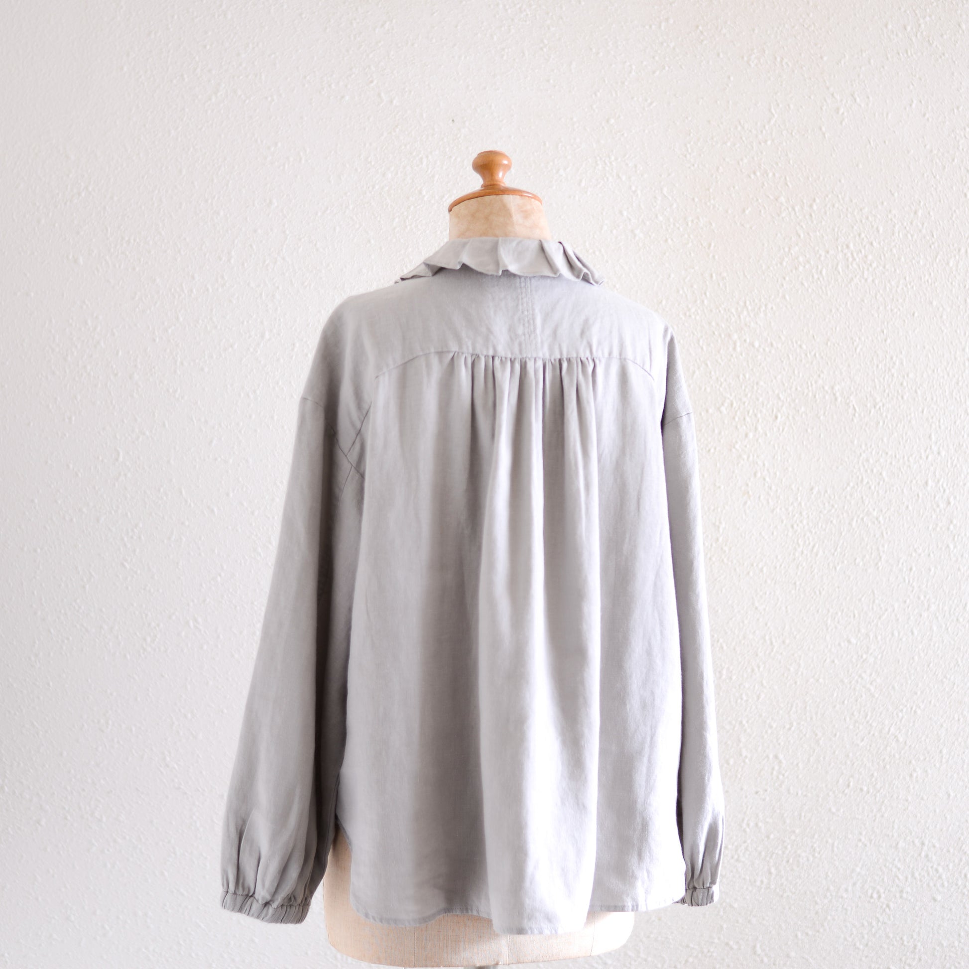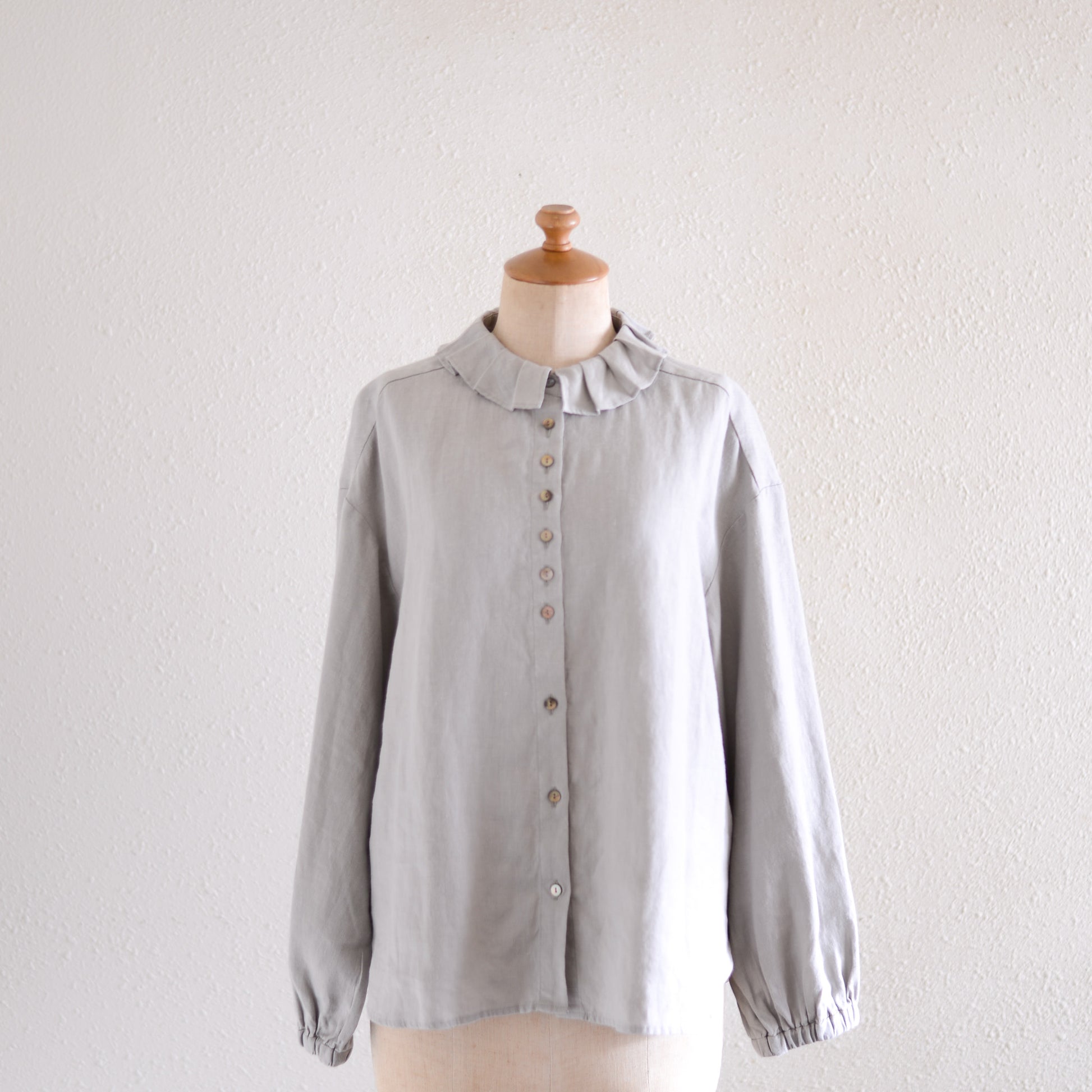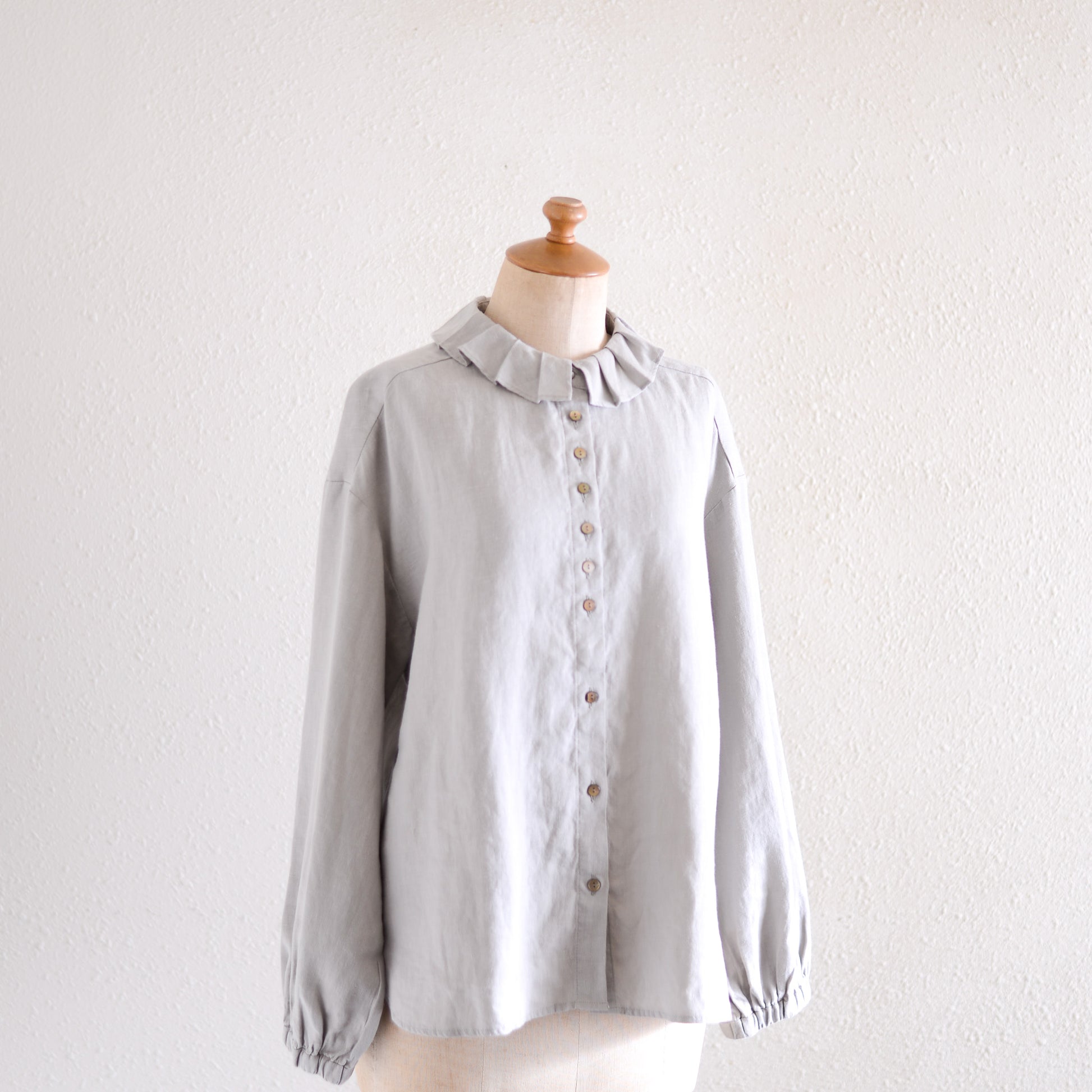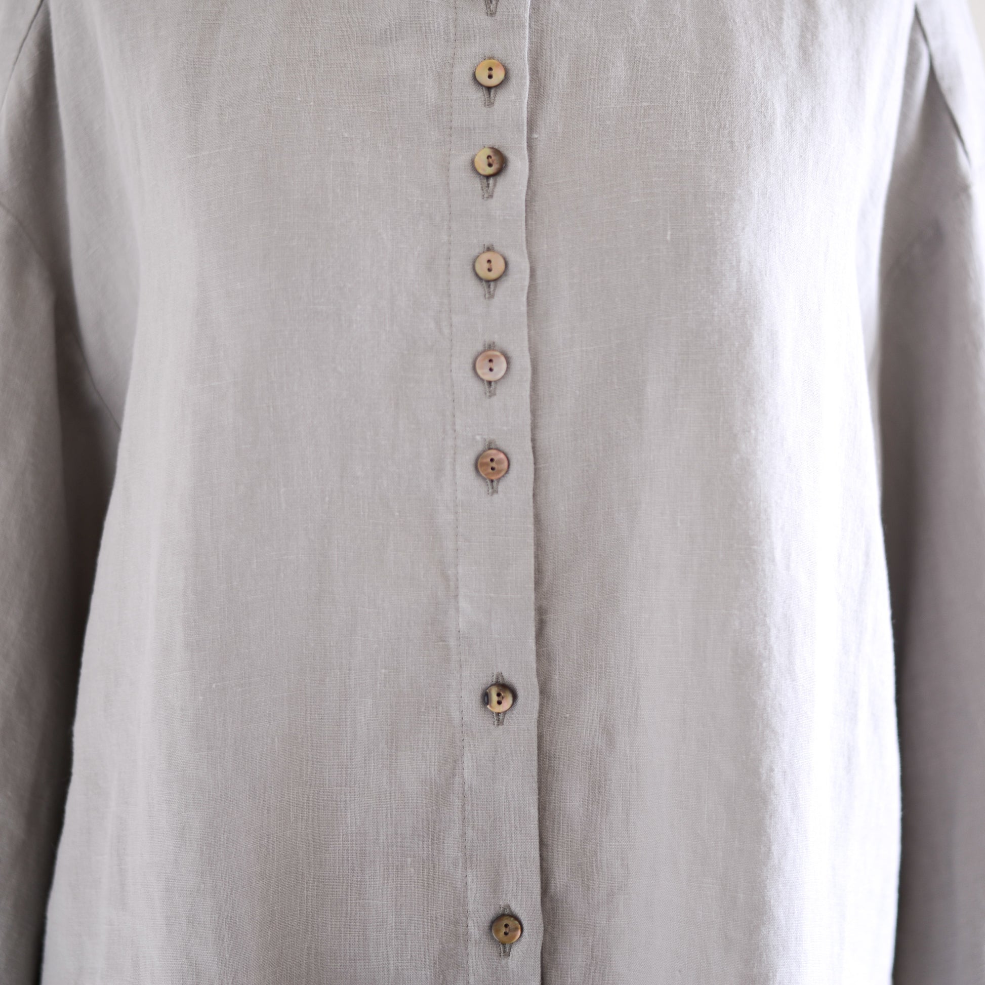 しっかりとしたリネン生地を使用したこのブラウスは、