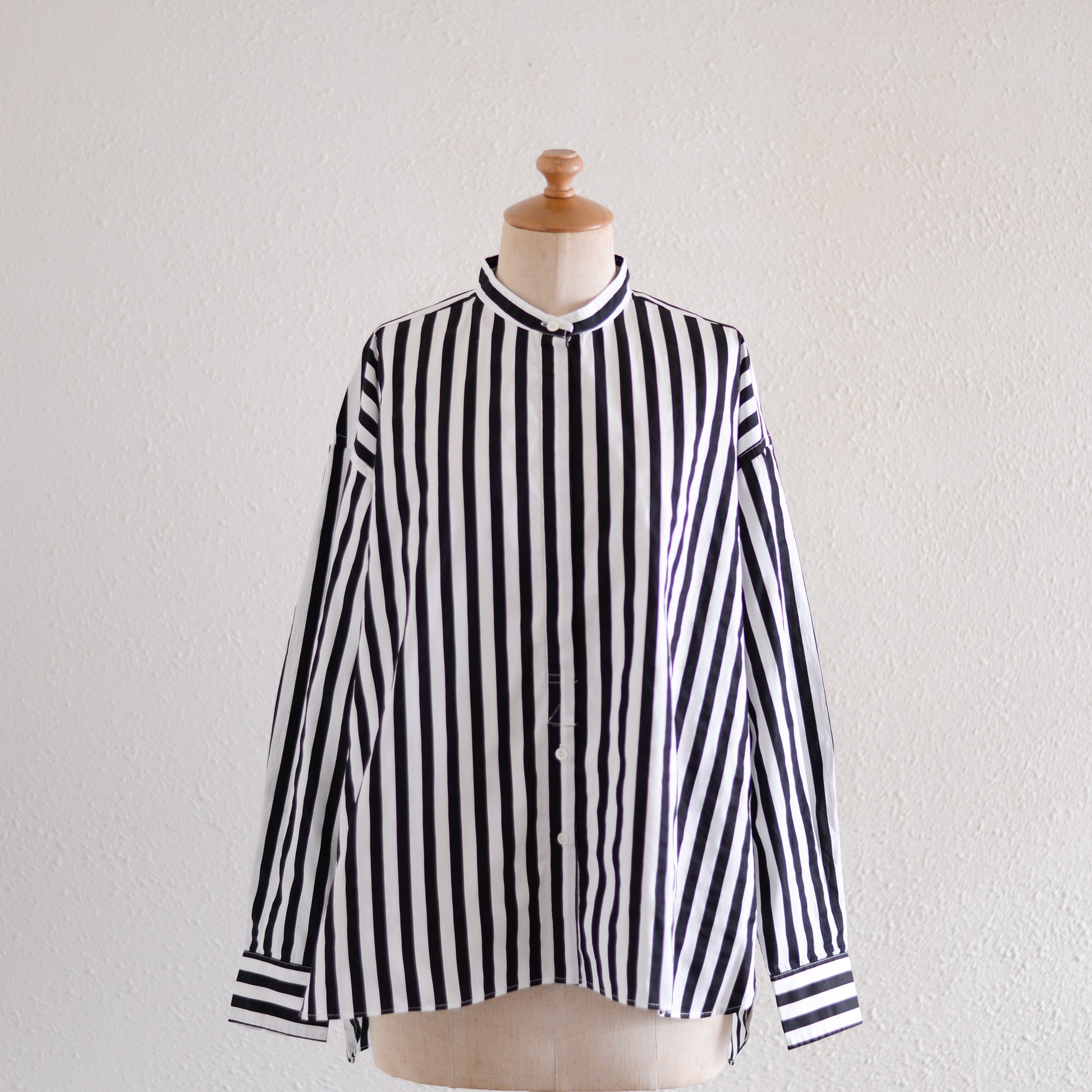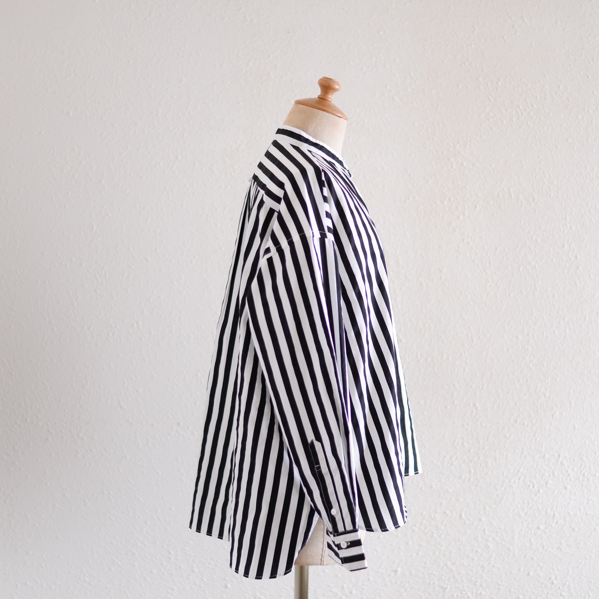 코튼 밴드 컬러 스트라이프 셔츠 Off White × Black