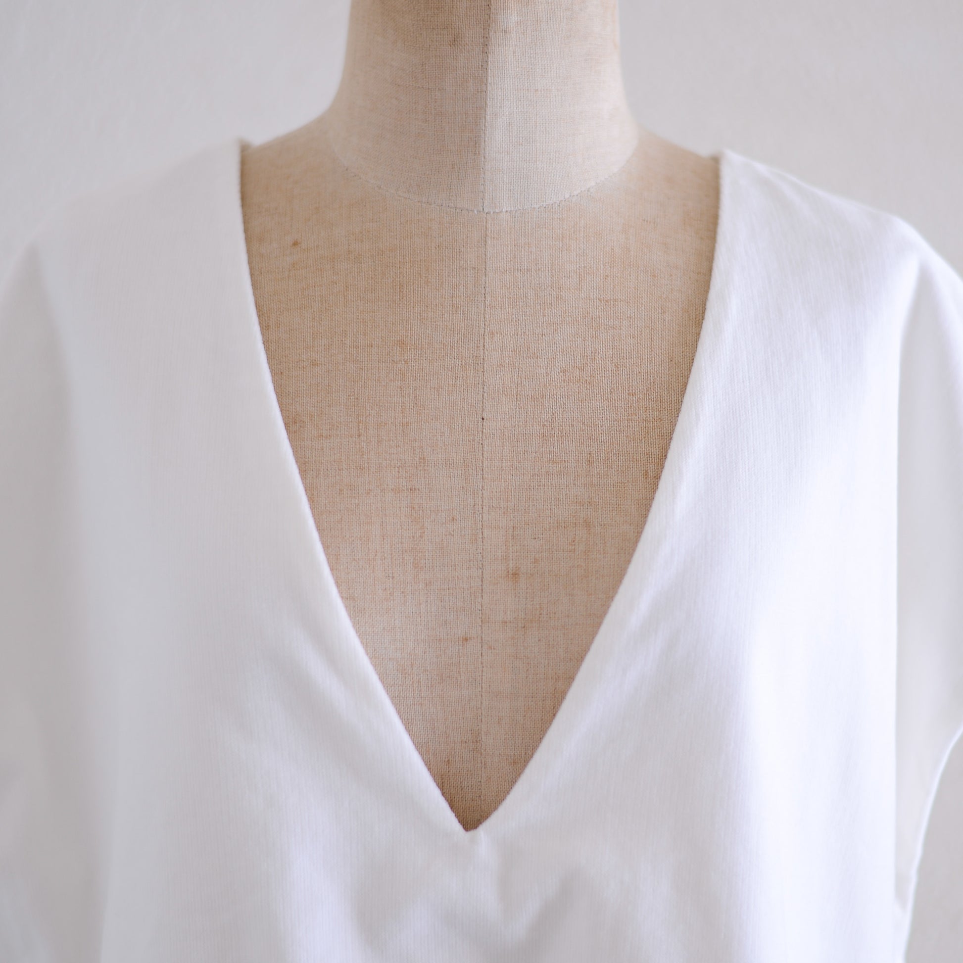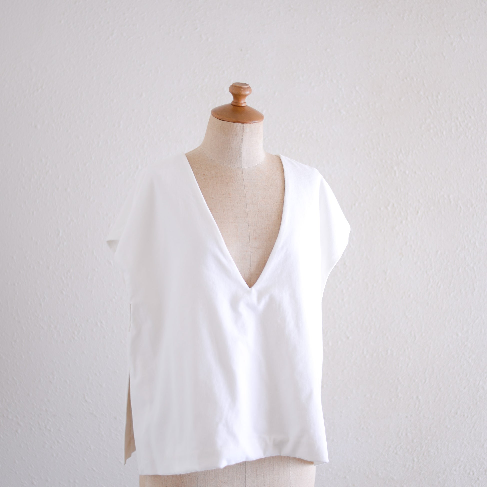 수원은, 깊은 V넥과 크루넥의 어느 쪽을 앞으로 해도 입을 수 있는 2way 사양.