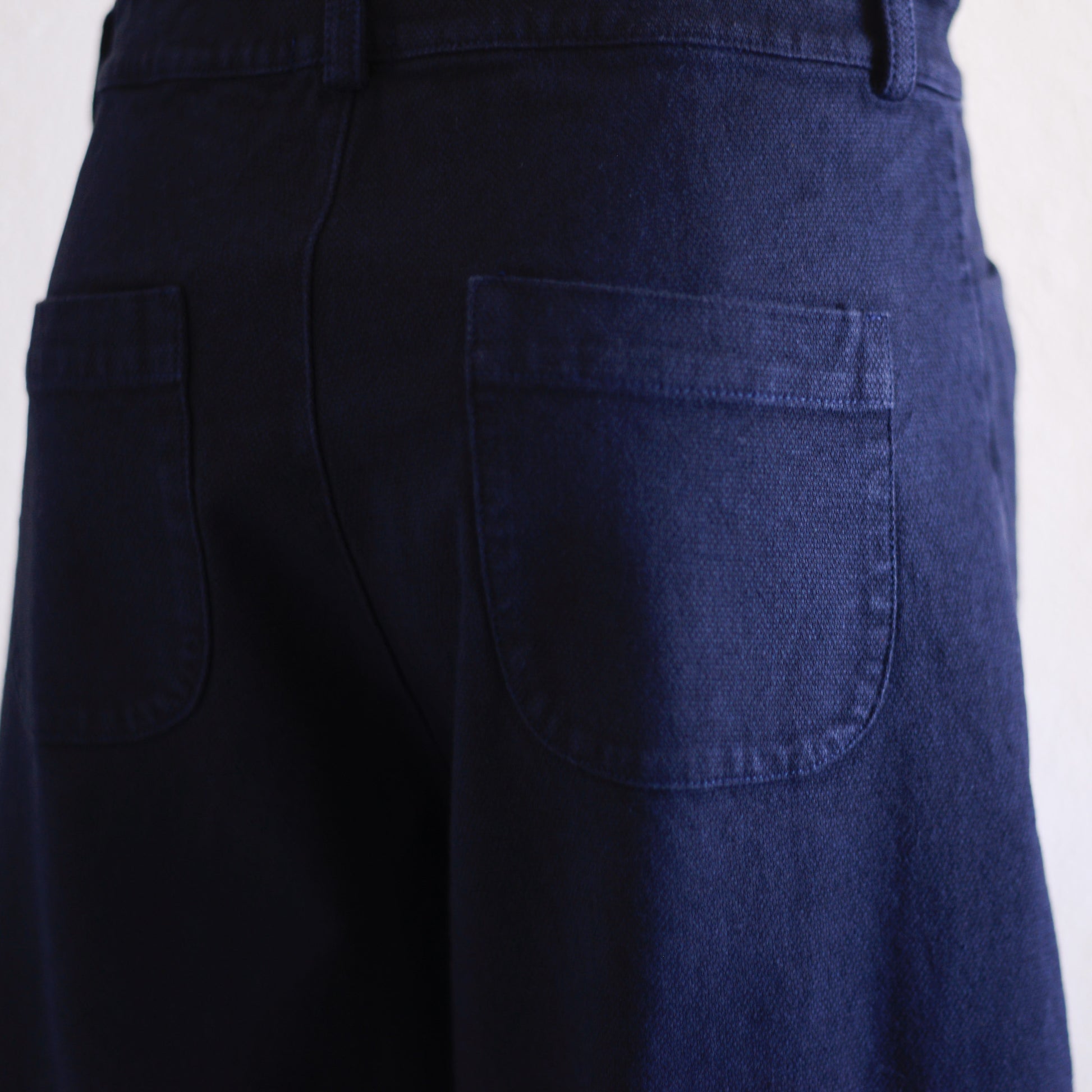両サイドのポケットは実用的で、ヒップ左右には角のない柔らかな形のポケットを配置。