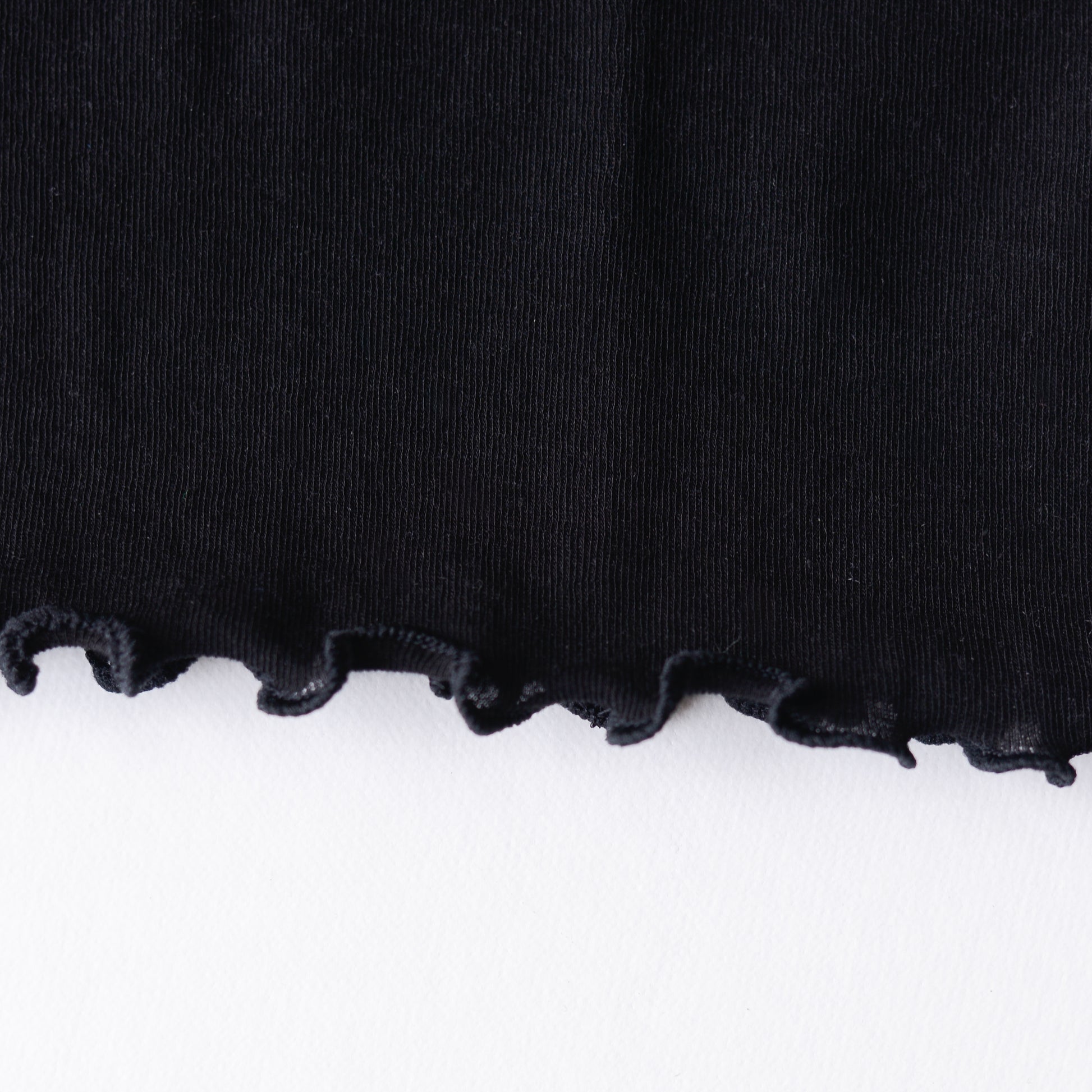 裾にあしらったさりげないフリルが、重ね着にも映えるアクセントに。