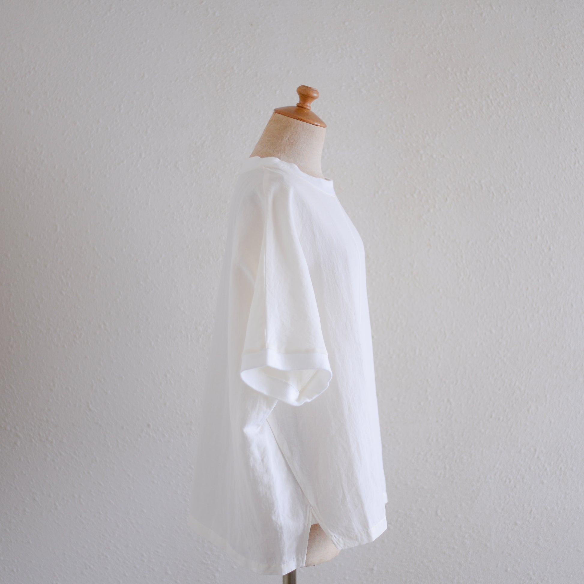 Tシャツの気楽さと、ブラウスのような表情をひとつにした新しいバランス。