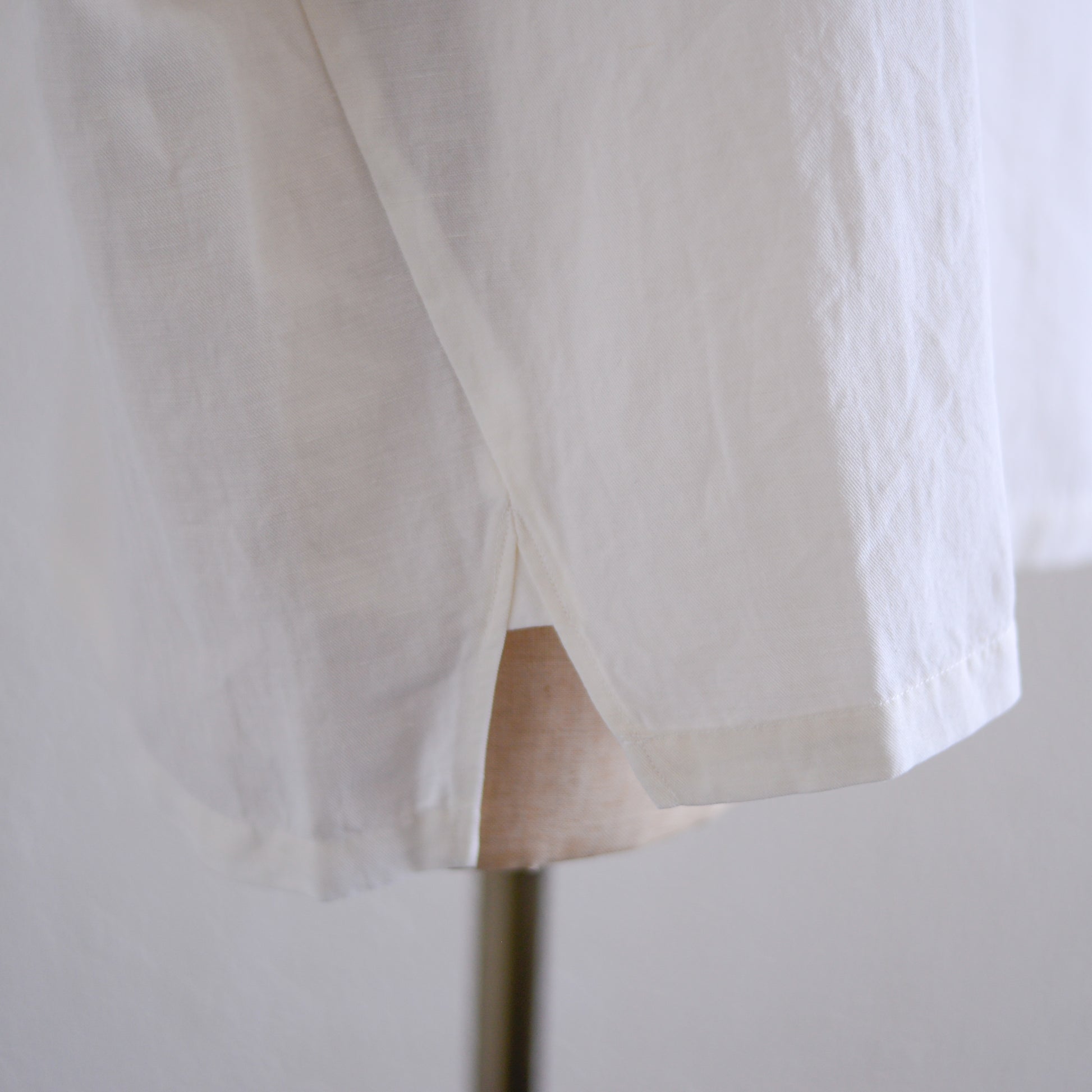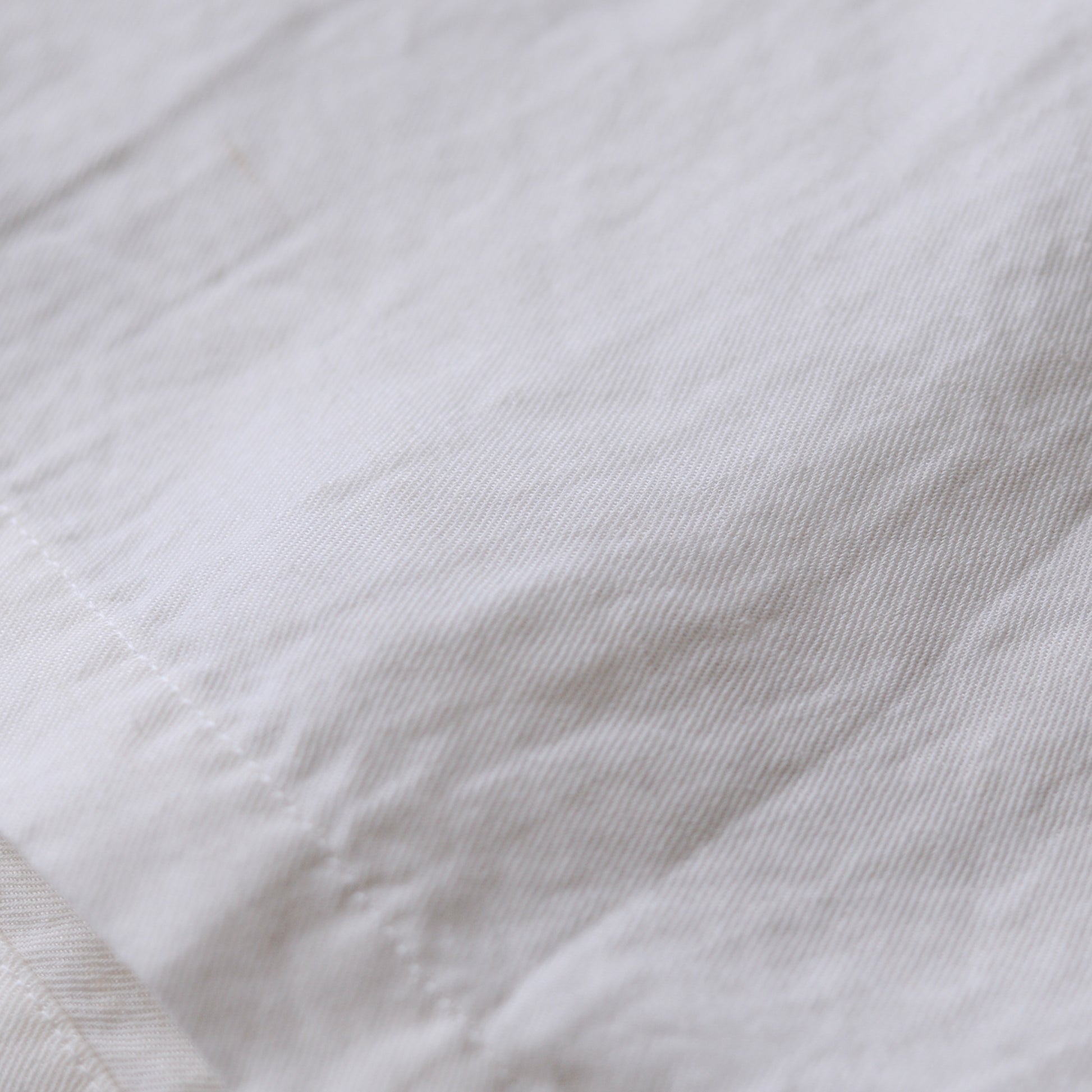 リネン特有のシャリっとした質感に、コットンがざることでザラつきが抑えられ、素肌でも心地よい滑らかさに仕上がっています。