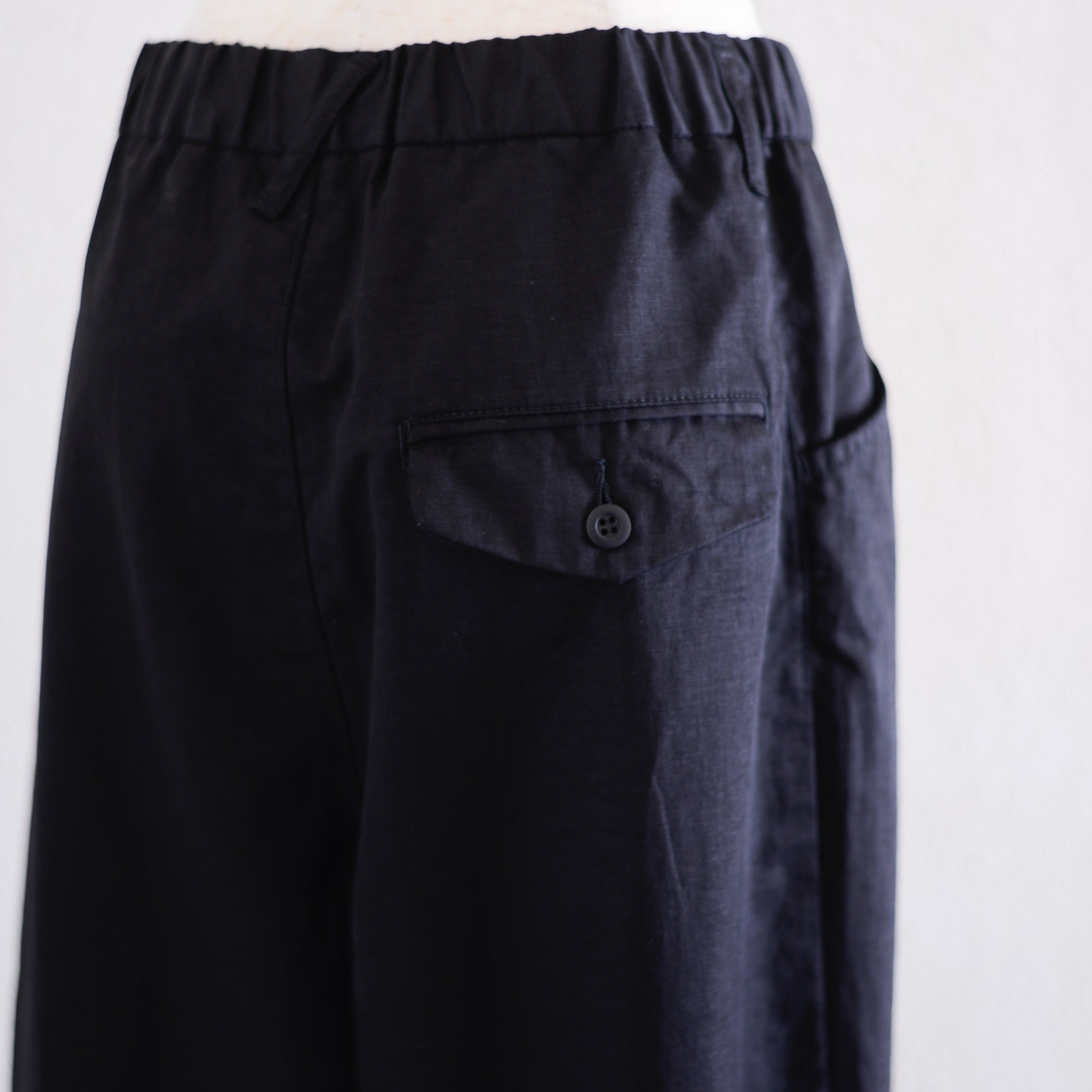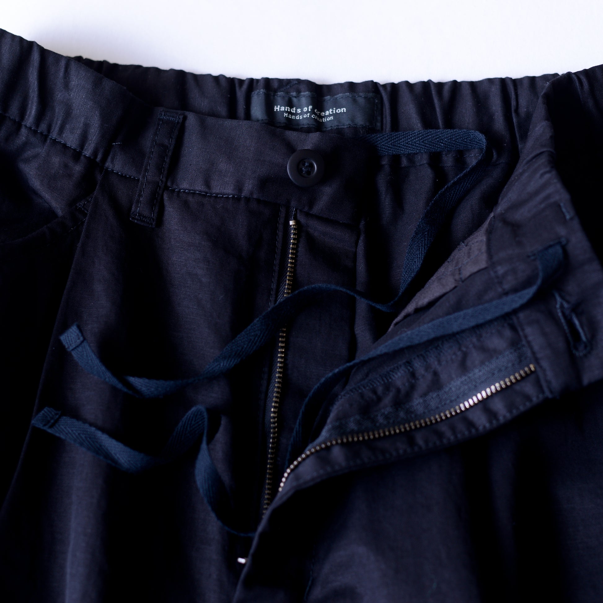 79%コットンと21%リネンを掛け合わせた生地は、パンツとしては比較的薄手でありながら、綾織ならではしっかり感を備えています。