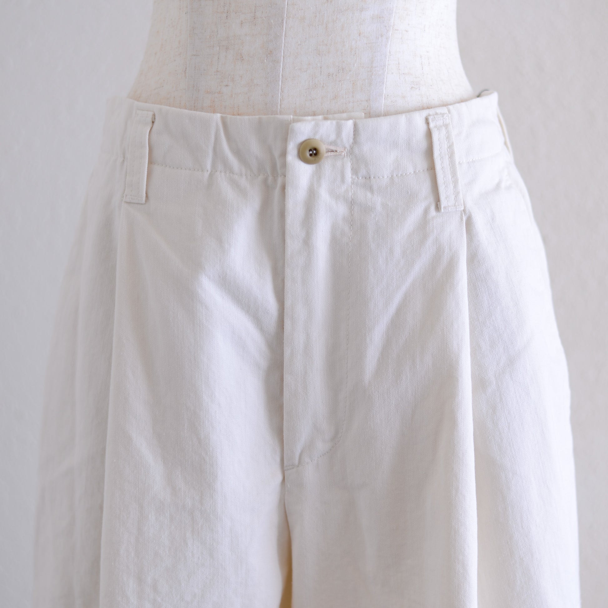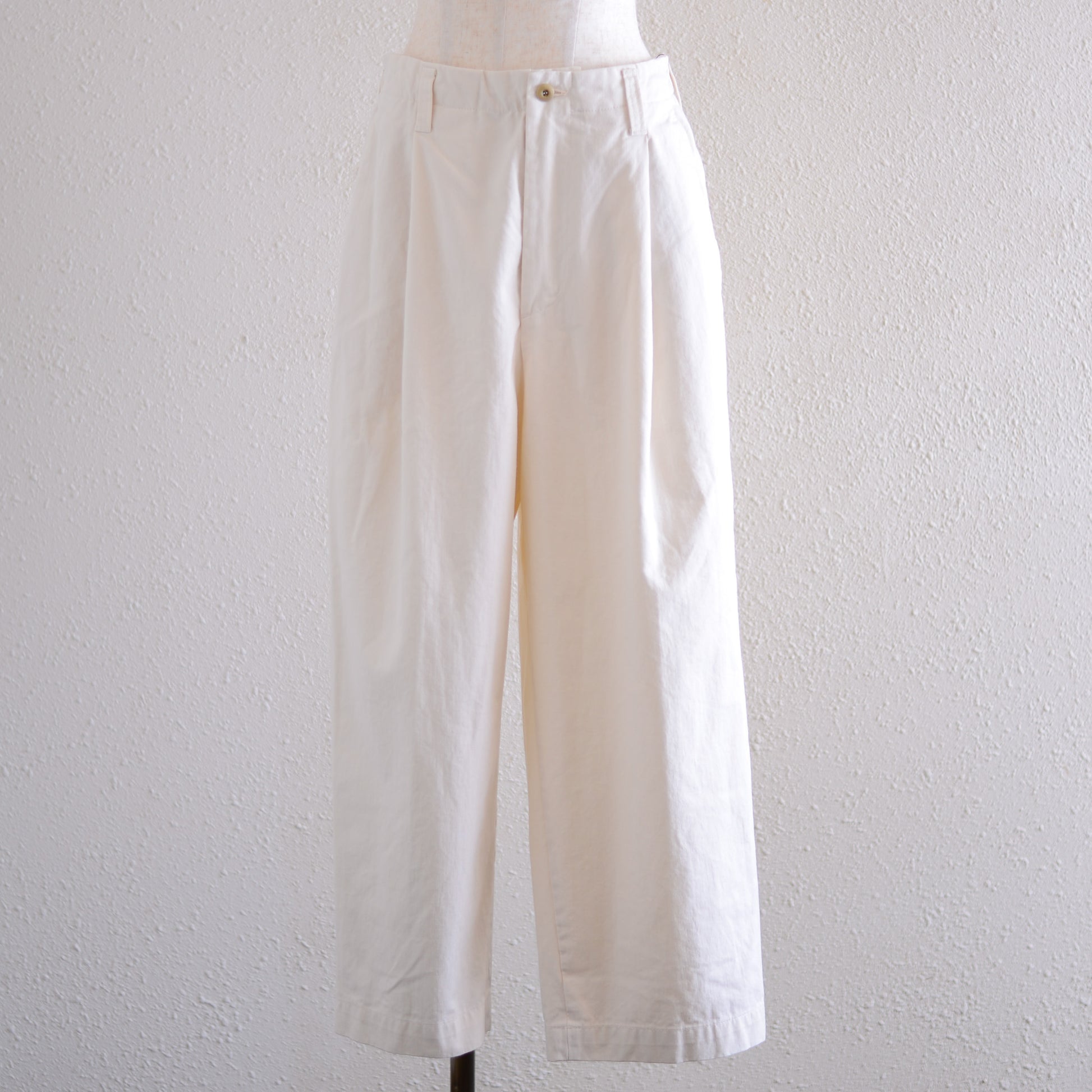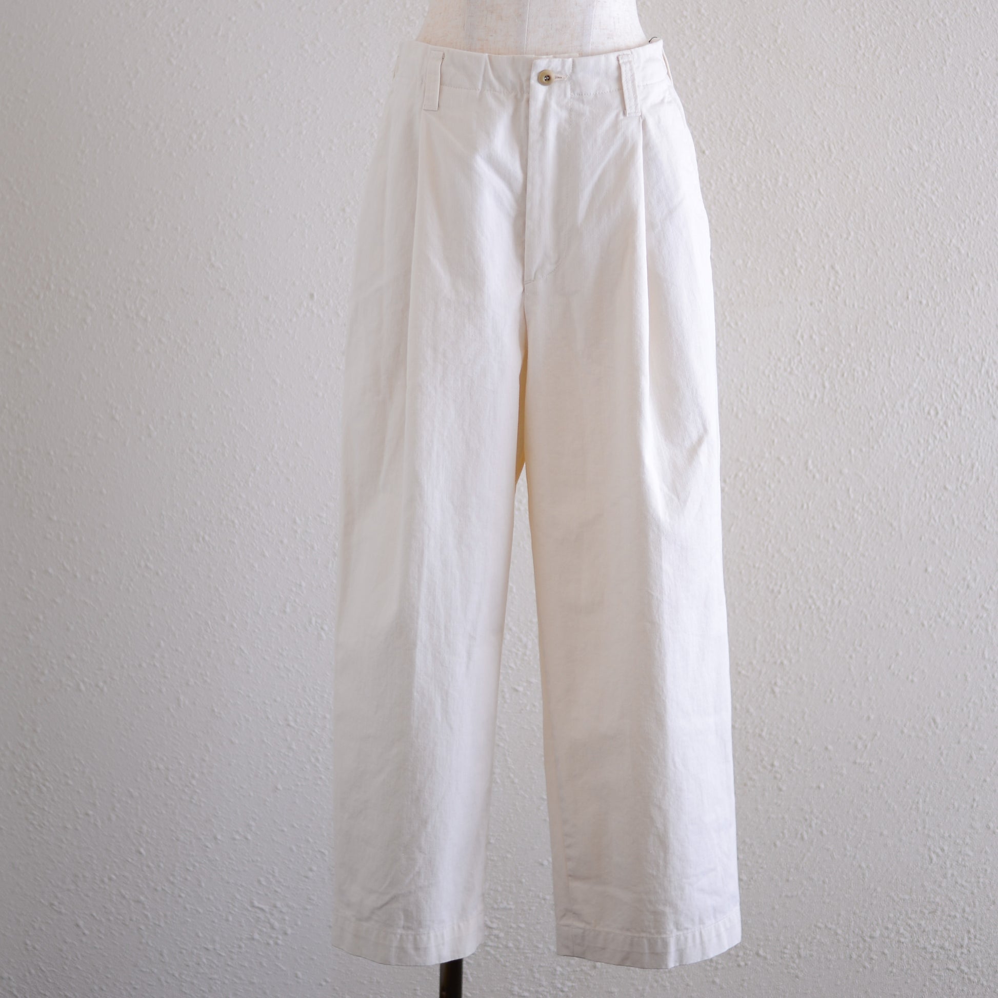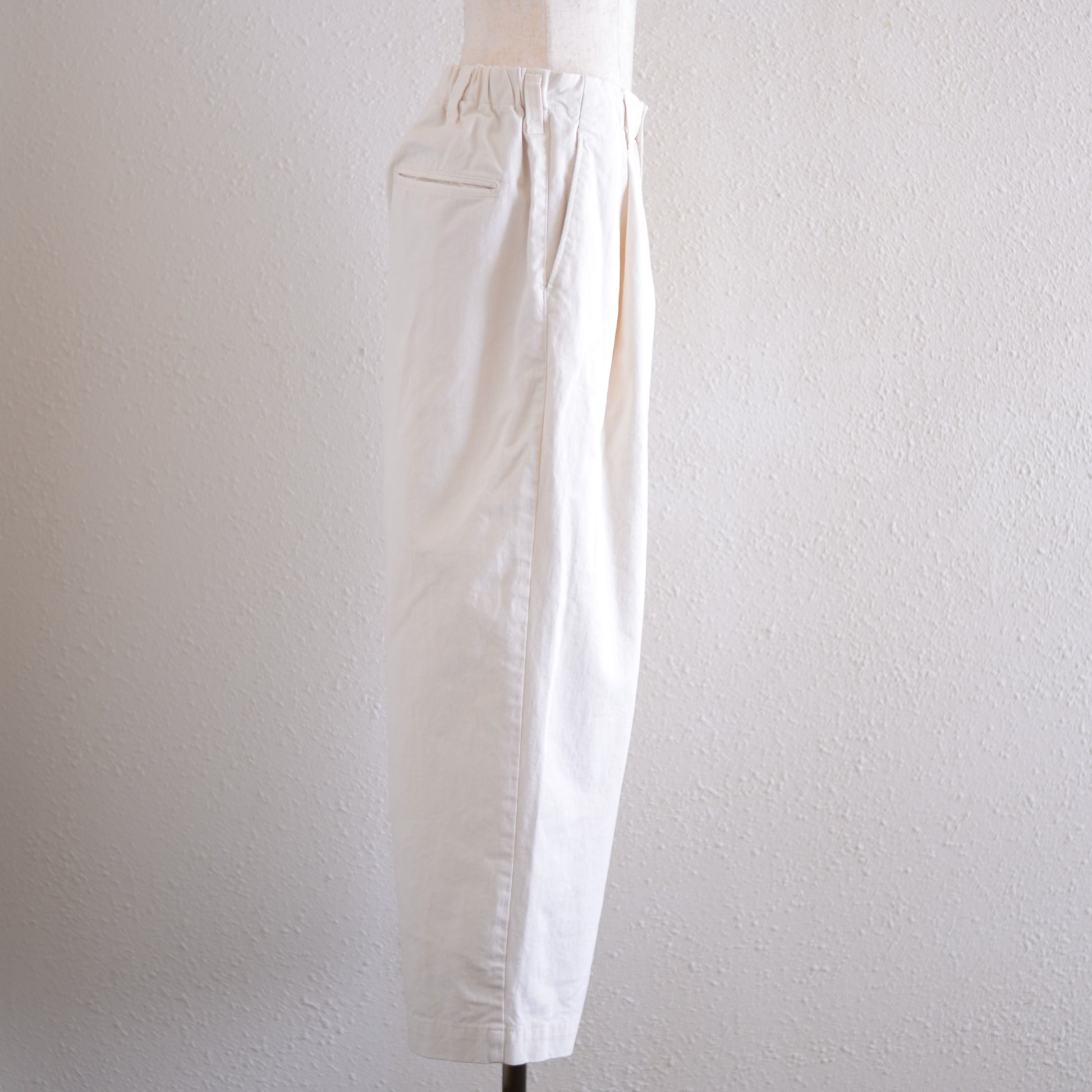 裾に向かって緩やかに細くなるワイド幅のテーパードシルエットは、