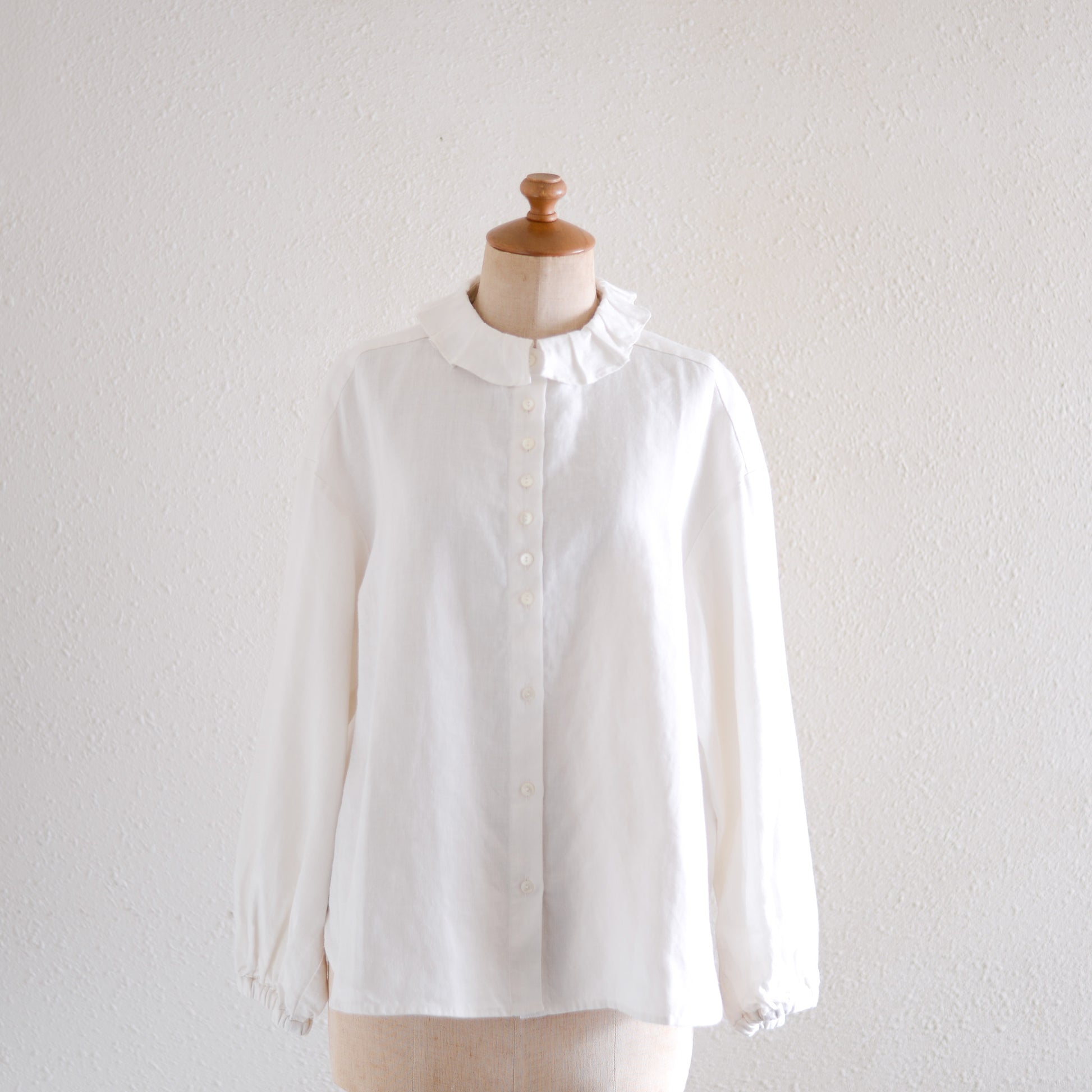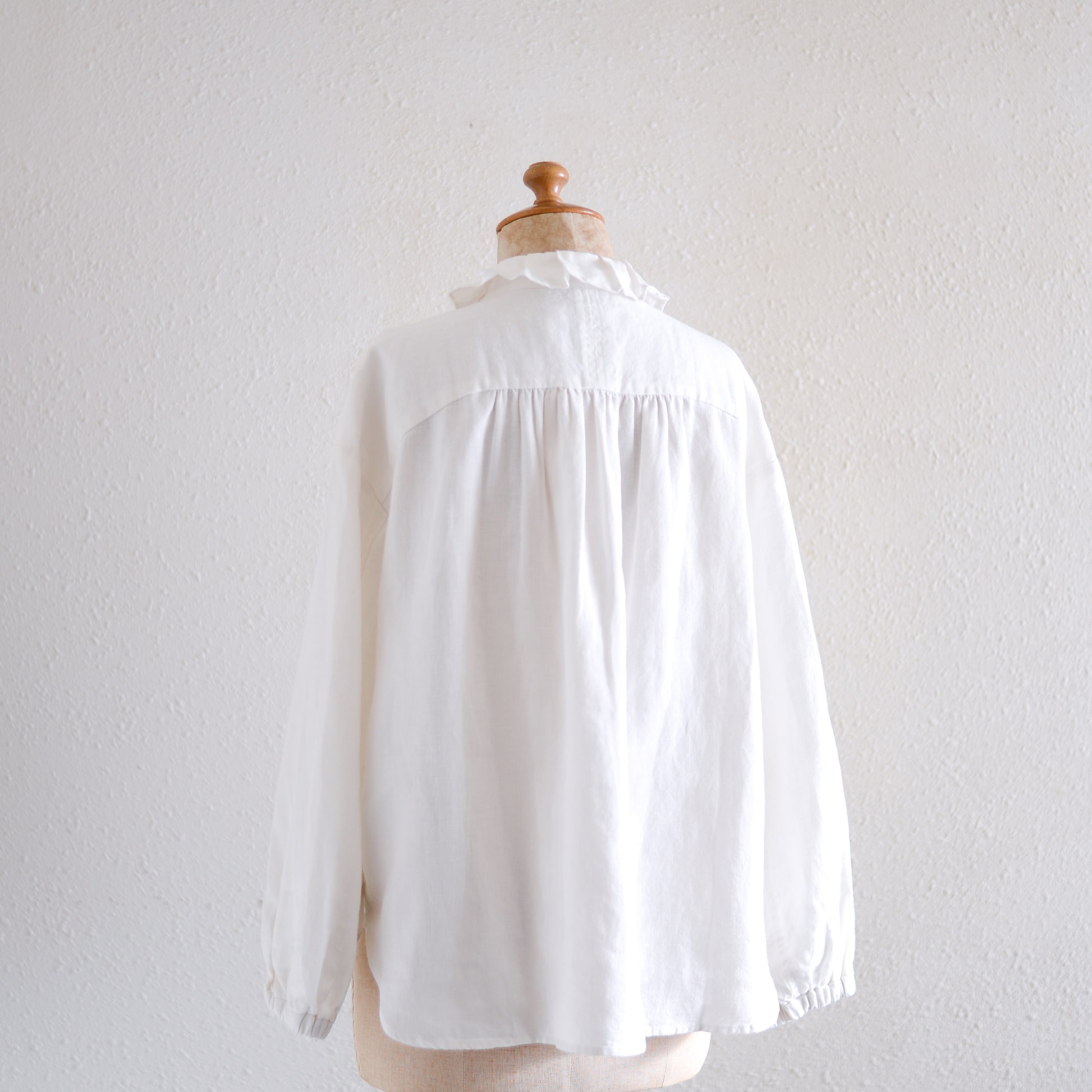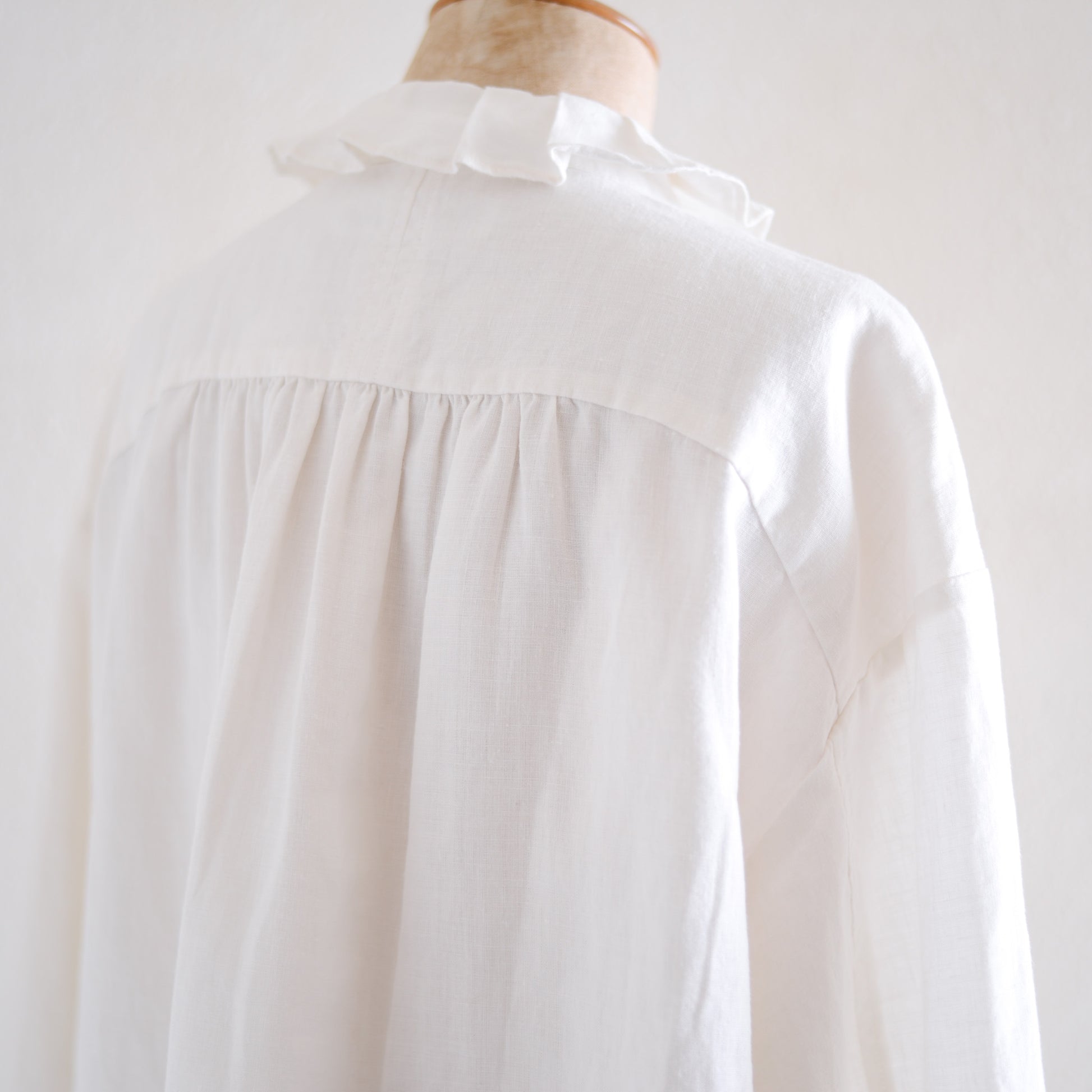 しっかりとしたリネン生地を使用したこのブラウスは、
