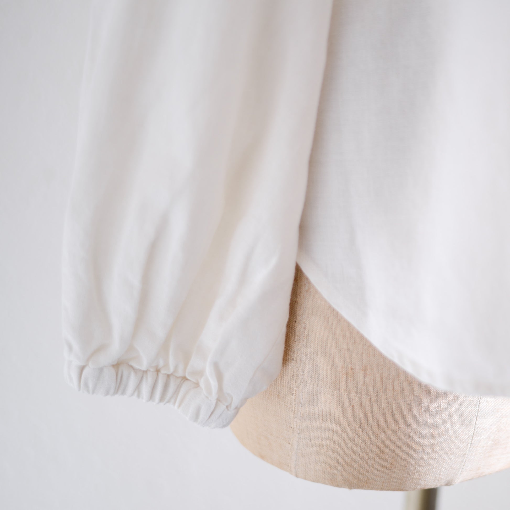 袖はふんわりと丸みを帯び、手元はゴムでキュッとまとまる形。