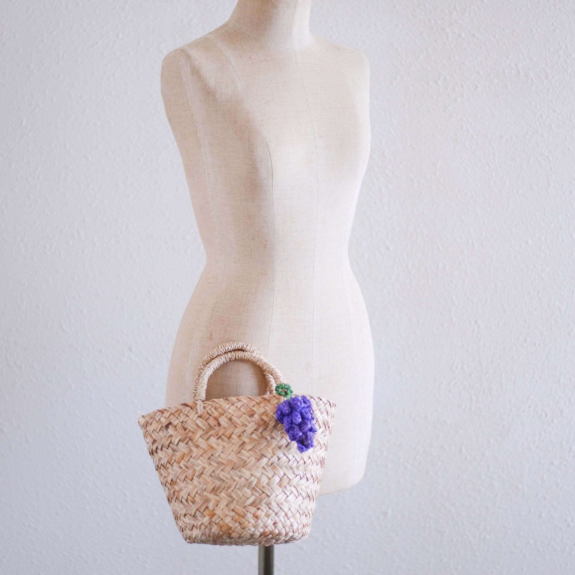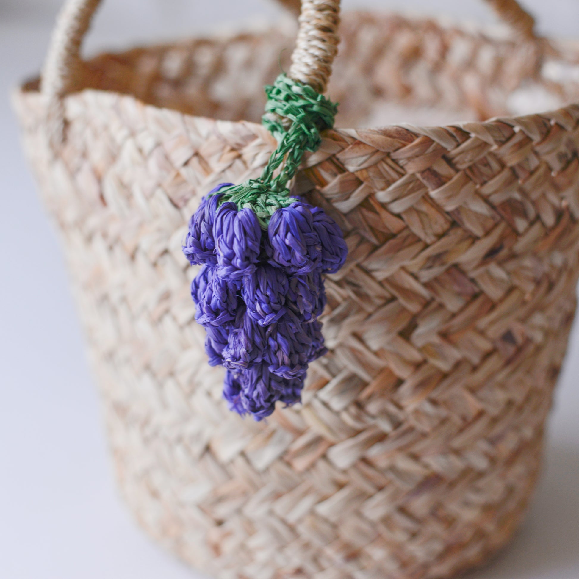 象・ブドウ・バナナの立体的に編まれたチャームは、ナチュラルな編み地に可愛らしい表情を添えてくれます。
